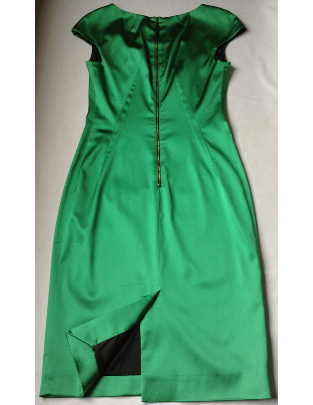 Robe "séductrice" D&G, col rond, sans manche, mi longue, très moulante et de couleur vert vif.