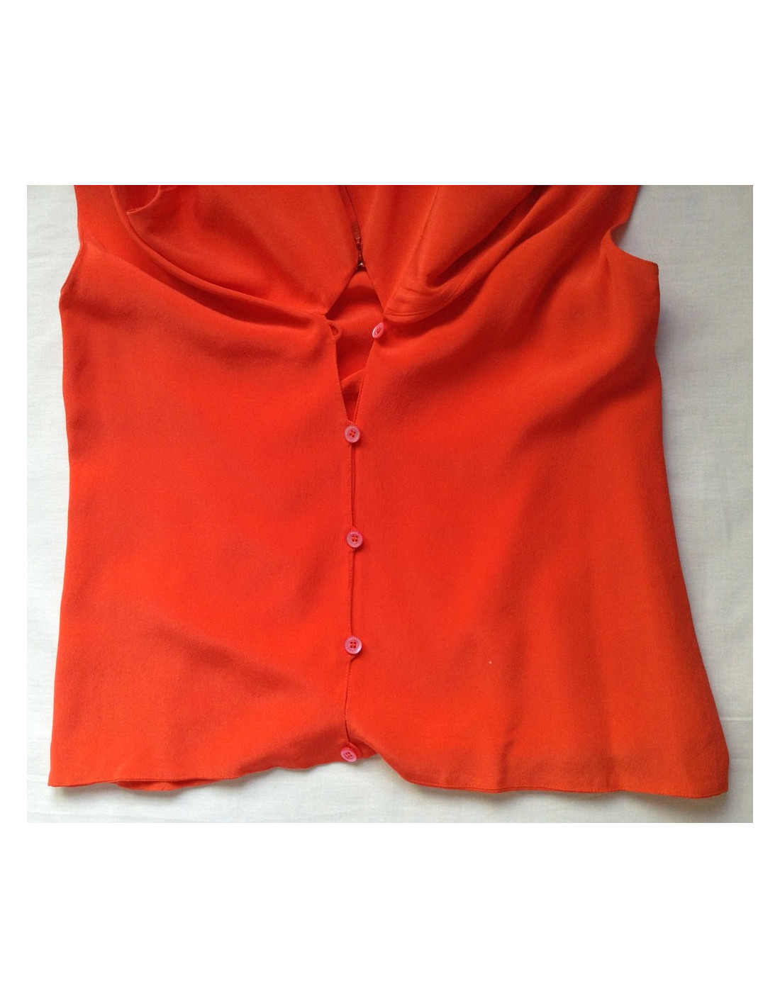 Zip d'ouverture invisible dans le haut du dos ajouté d'un petit bouton orangé siglé Gucci.100% soie.