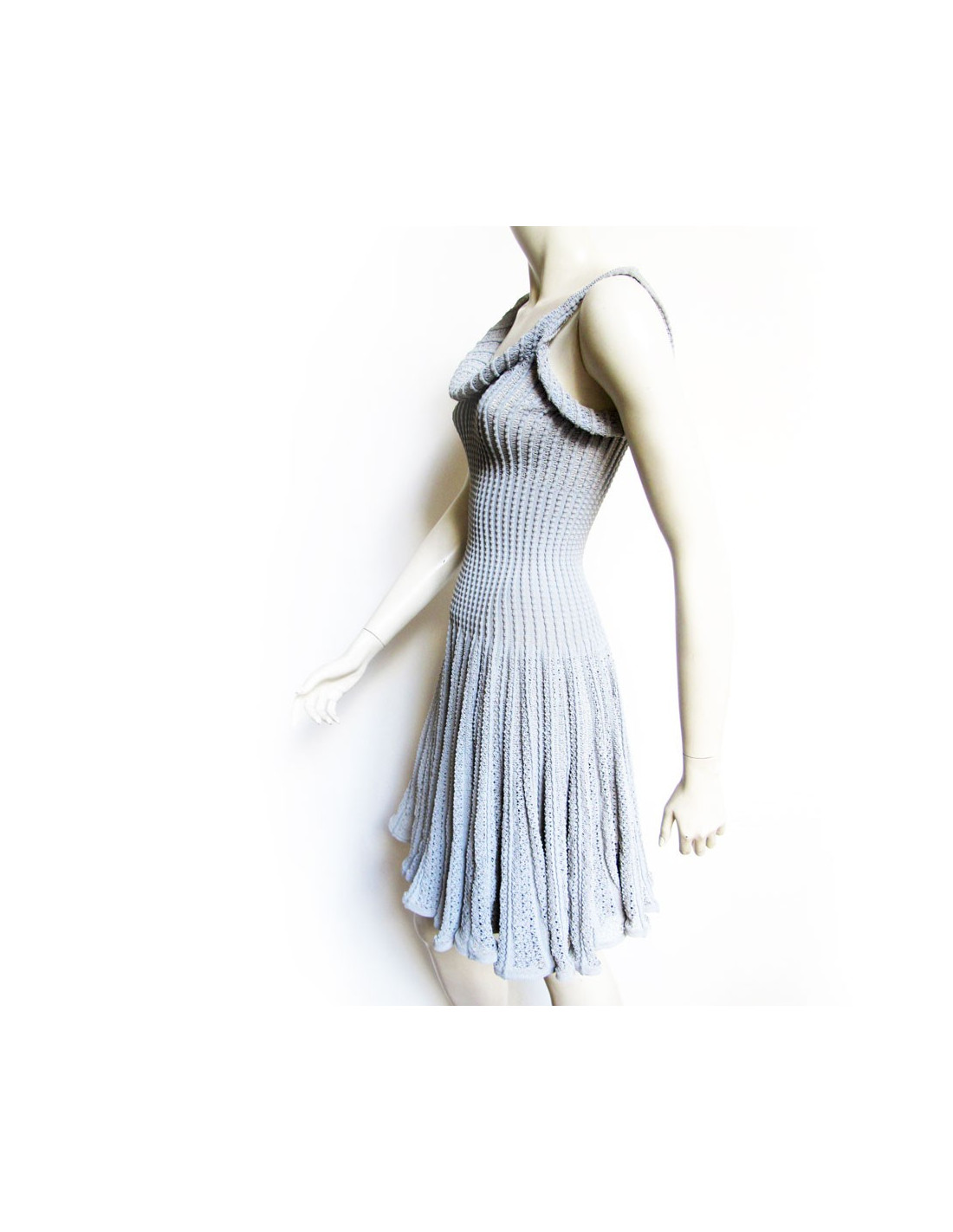 Resserrée à la taille de facon stretch et le bas de la robe est en volant ajouré façon broderie.