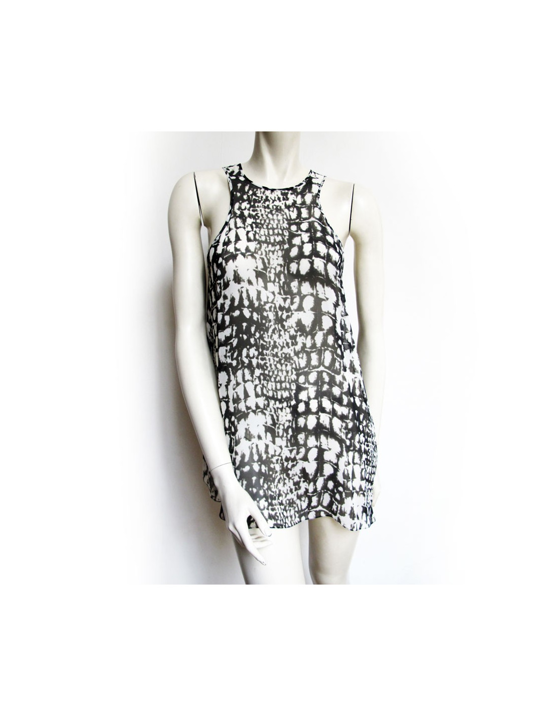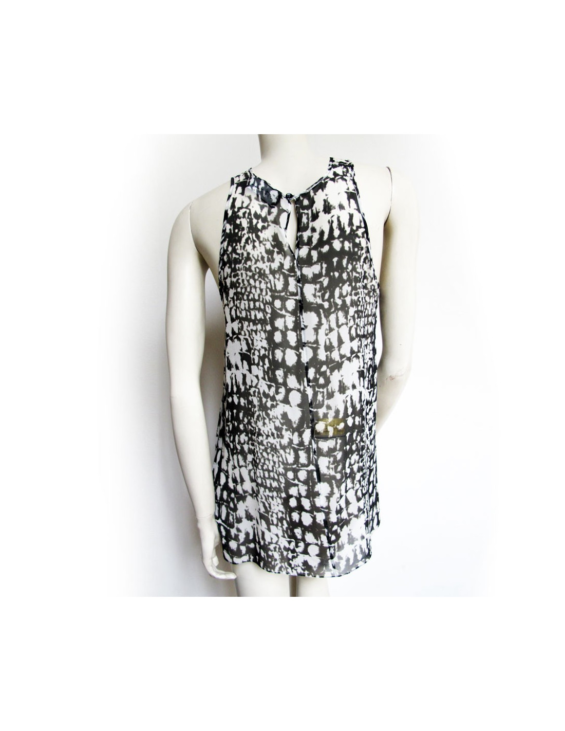 Ensemble robe et top en soie LUTZ HUELLE T36, imprimé noir et blanc.