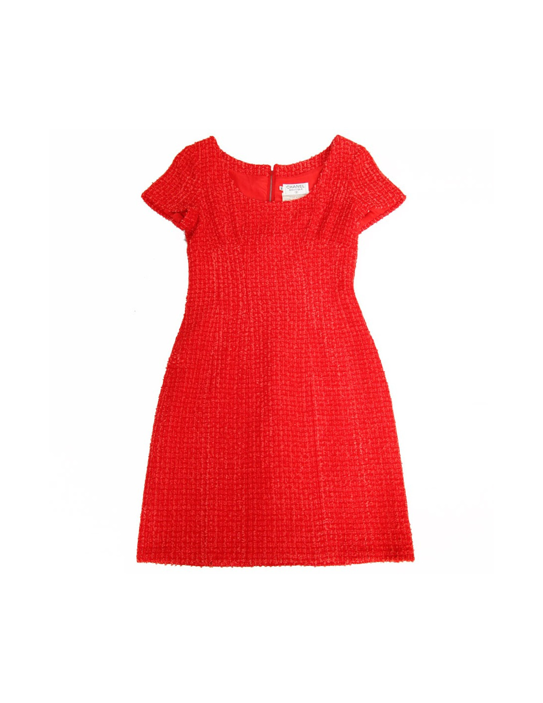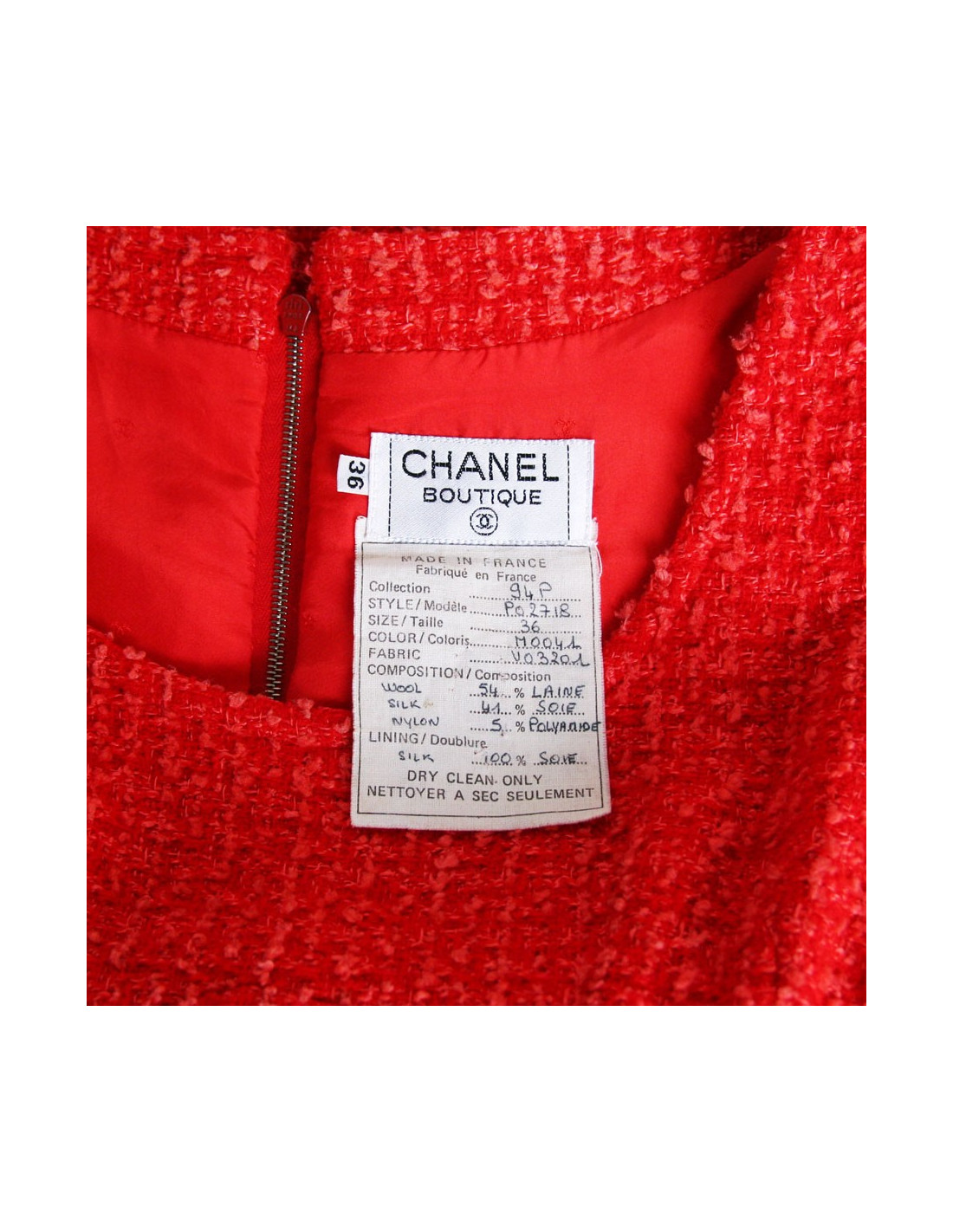 Jolie robe CHANEL en tweed corail, Chanel, taille 36. Très 90 ' robe sage !