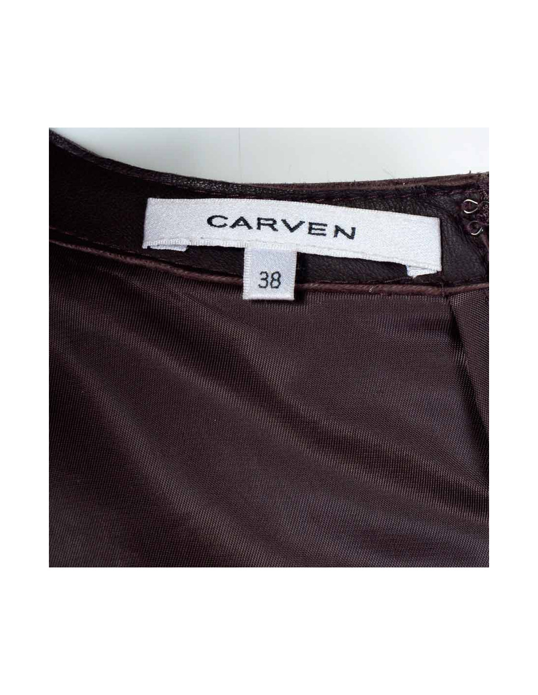 Jolie robe Carven sans Manches, couleur prune foncée. 100% cuir d'agneau, effet vieilli.