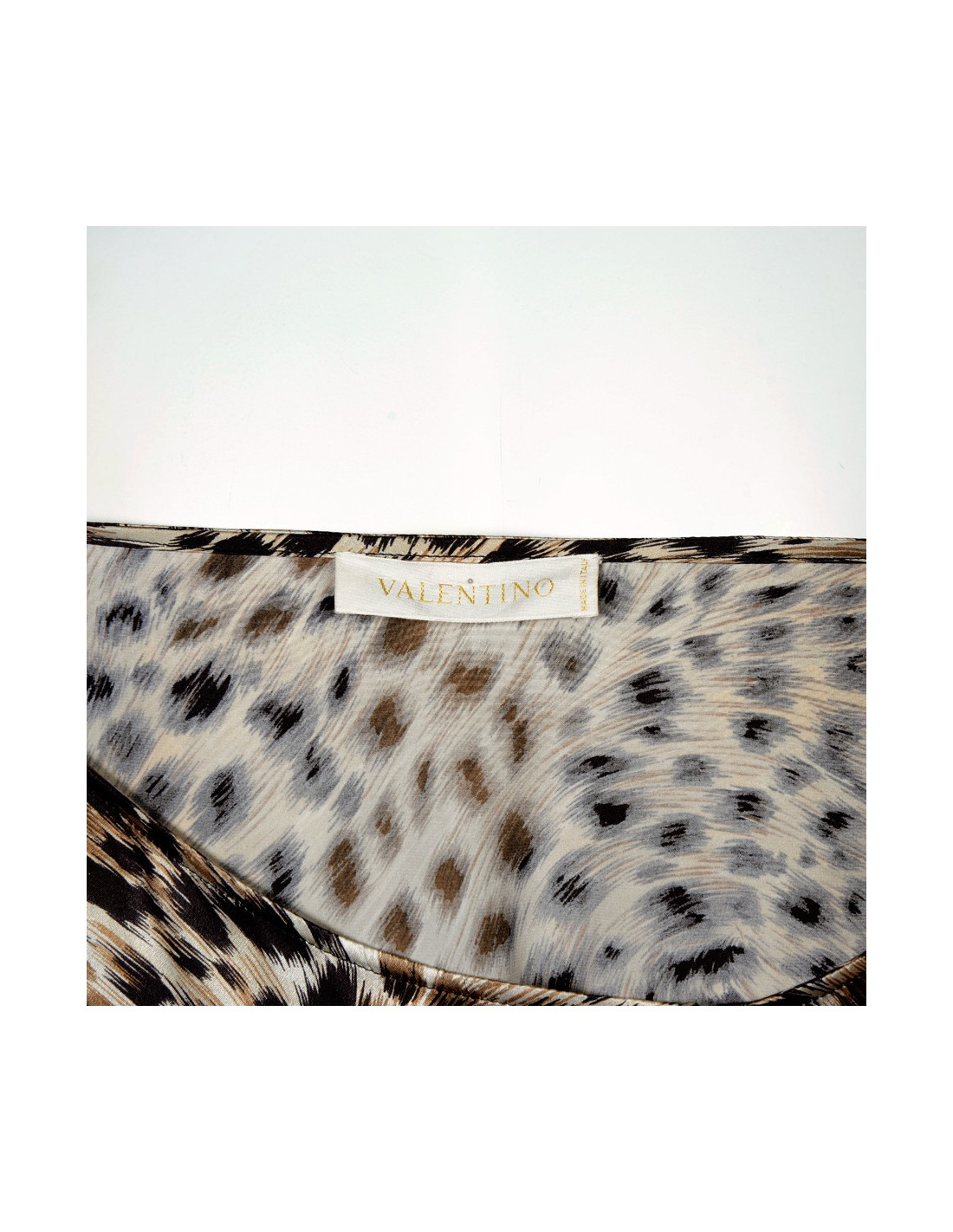 Robe Valentino en soie motifs panthère dans les tons marron et beige. Taille 40 équivaut à une taille 38