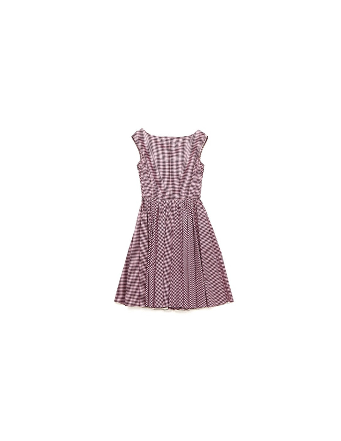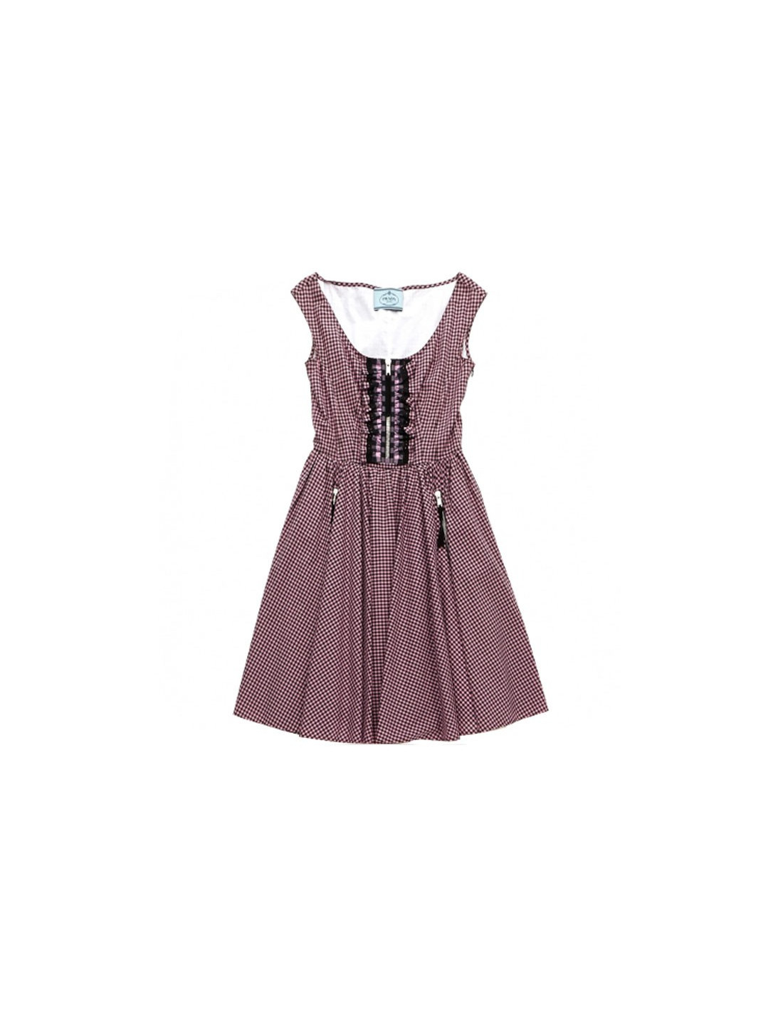 Ravissante robe Prada vichy rose et noir. Le zip poitrine s'ouvre sur 21,5 cm. Il est bordé de volants et de dentelle coton noir, pour un effet encore plus sixties. Deux poches zippées sur le jupon. État impeccable.