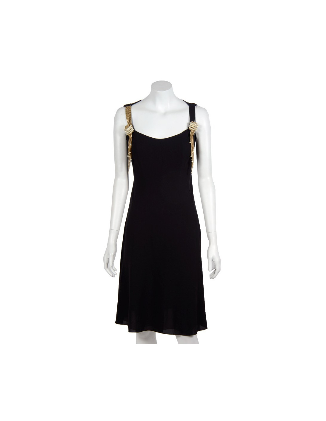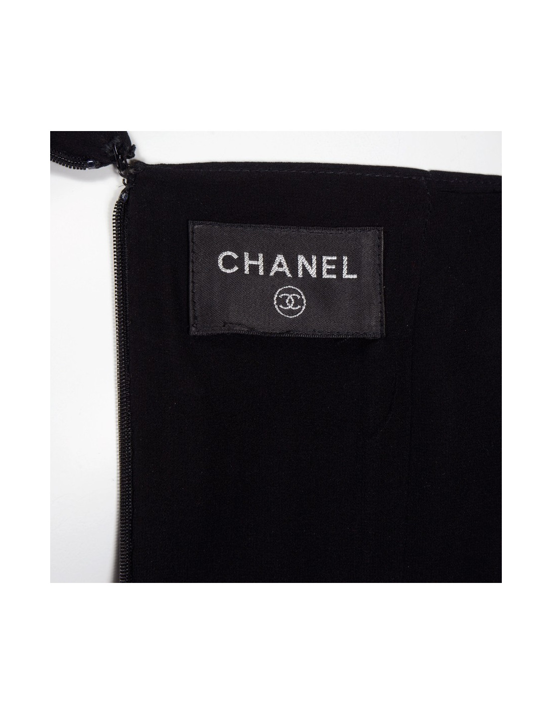 Robe de cocktail CHANEL t 38 FR en crêpe noir avec bijoux aux épaules