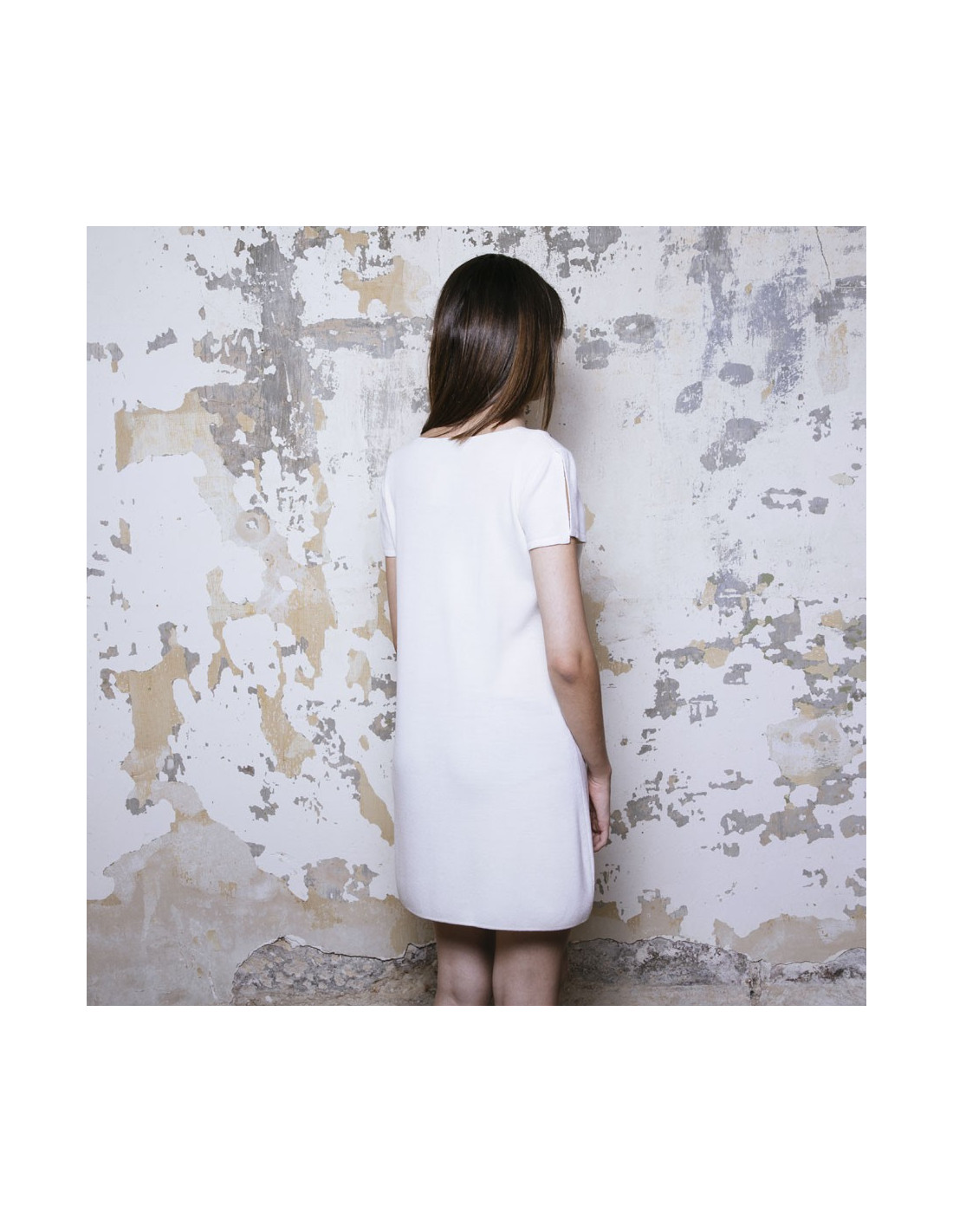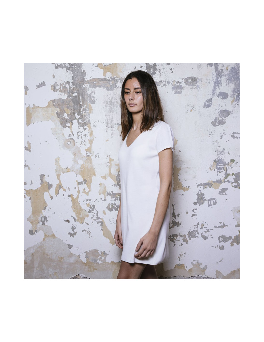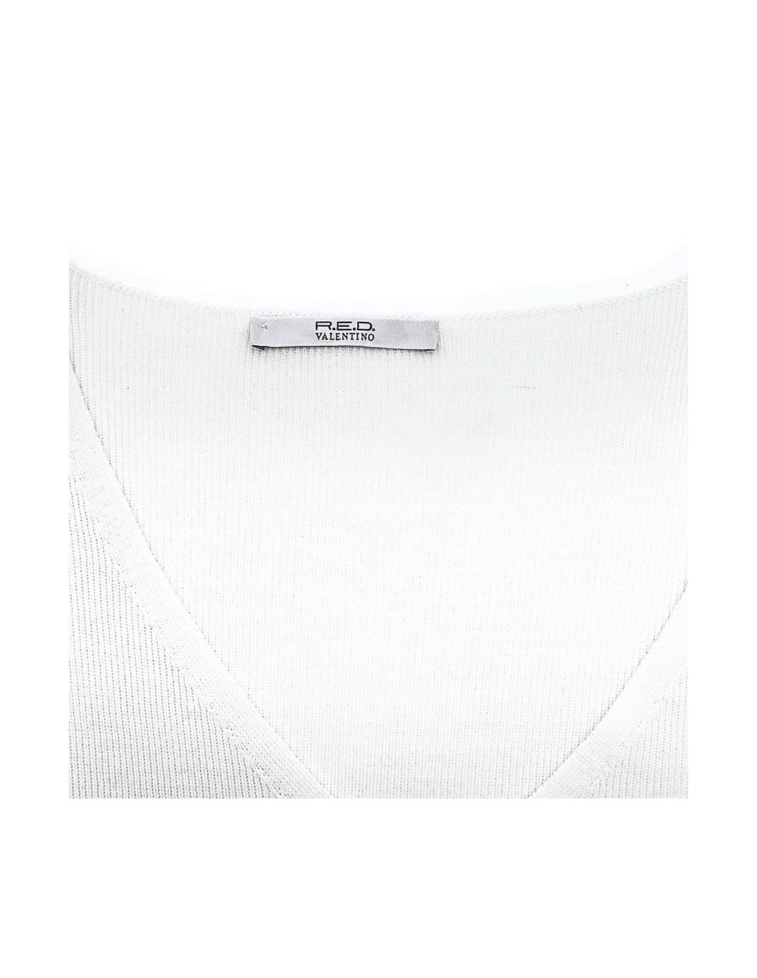 Robe Valentino RED en laine écrue, robe droite col en V, à manches courtes avec fentes. Taille 42 IT/38 FR