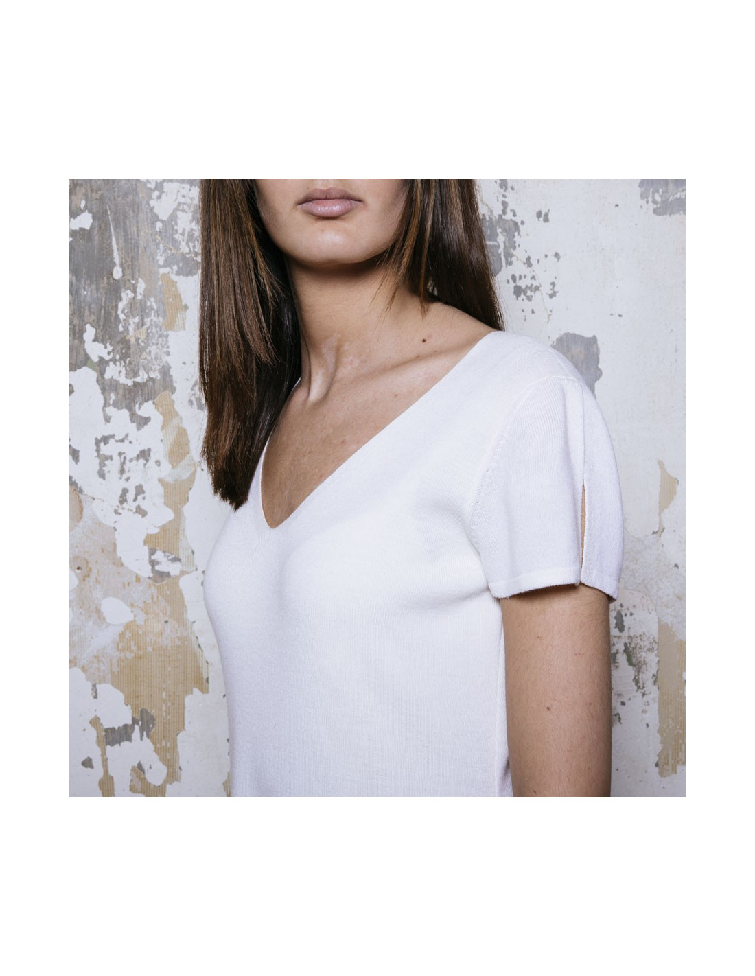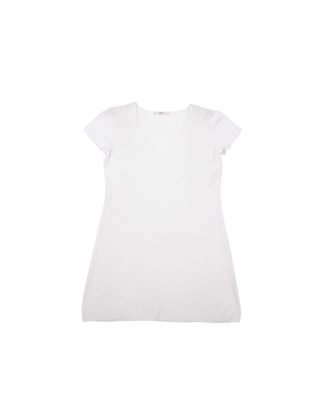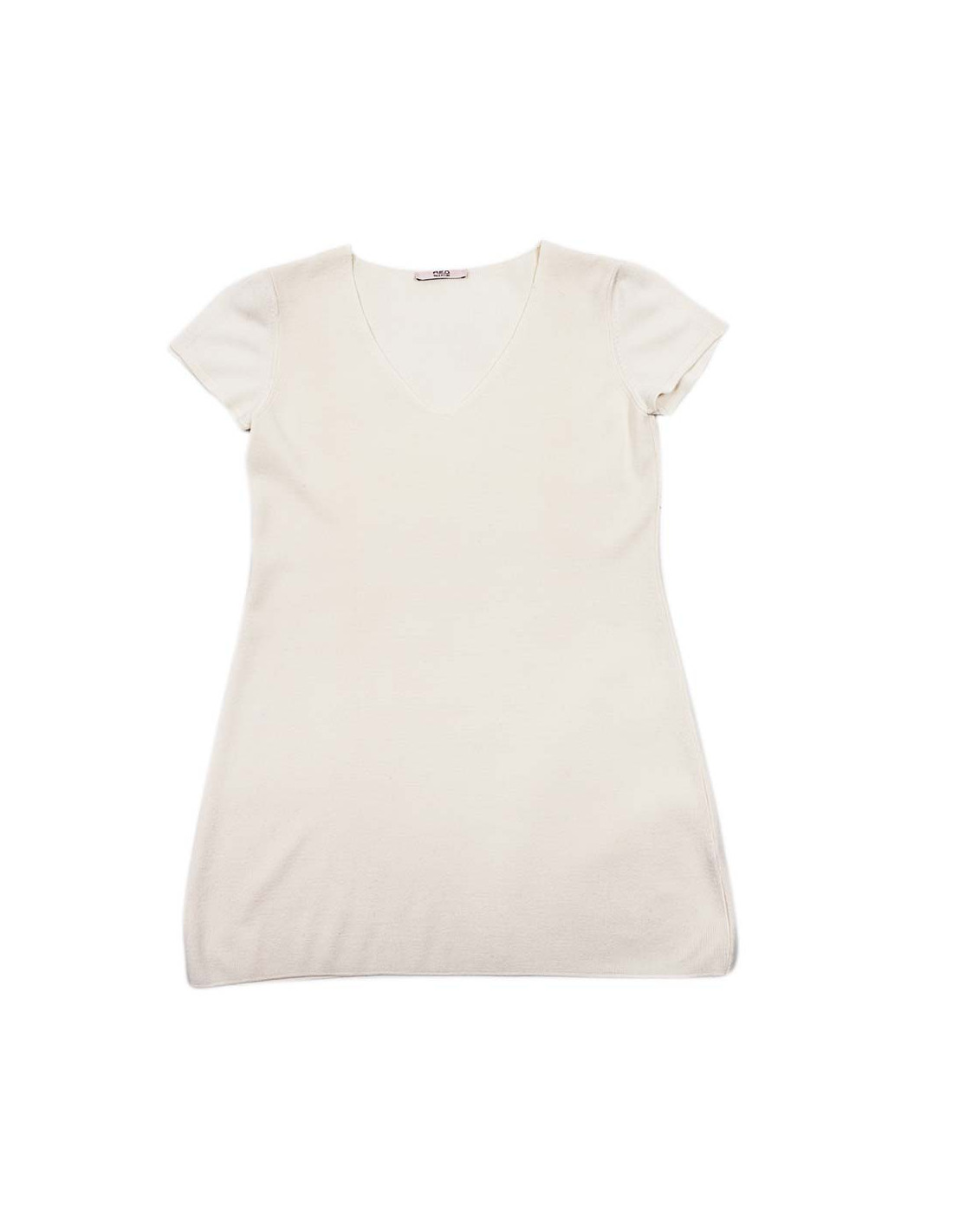 Robe Valentino RED en laine écrue, robe droite col en V, à manches courtes avec fentes. Taille 42 IT/38 FR