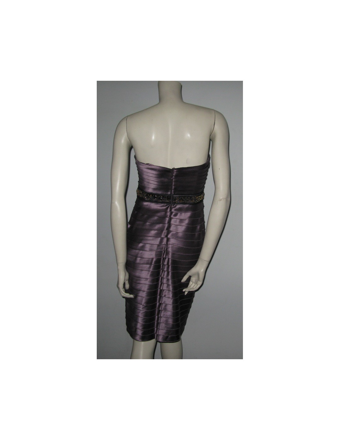 Magnifique robe bustier satinée couleur prune BCBG MAX AZRIA. Motifs plastiques (façon pierre) brodés au niveau de la ceinture. Taille 8 correspond à une taille 38 FR.