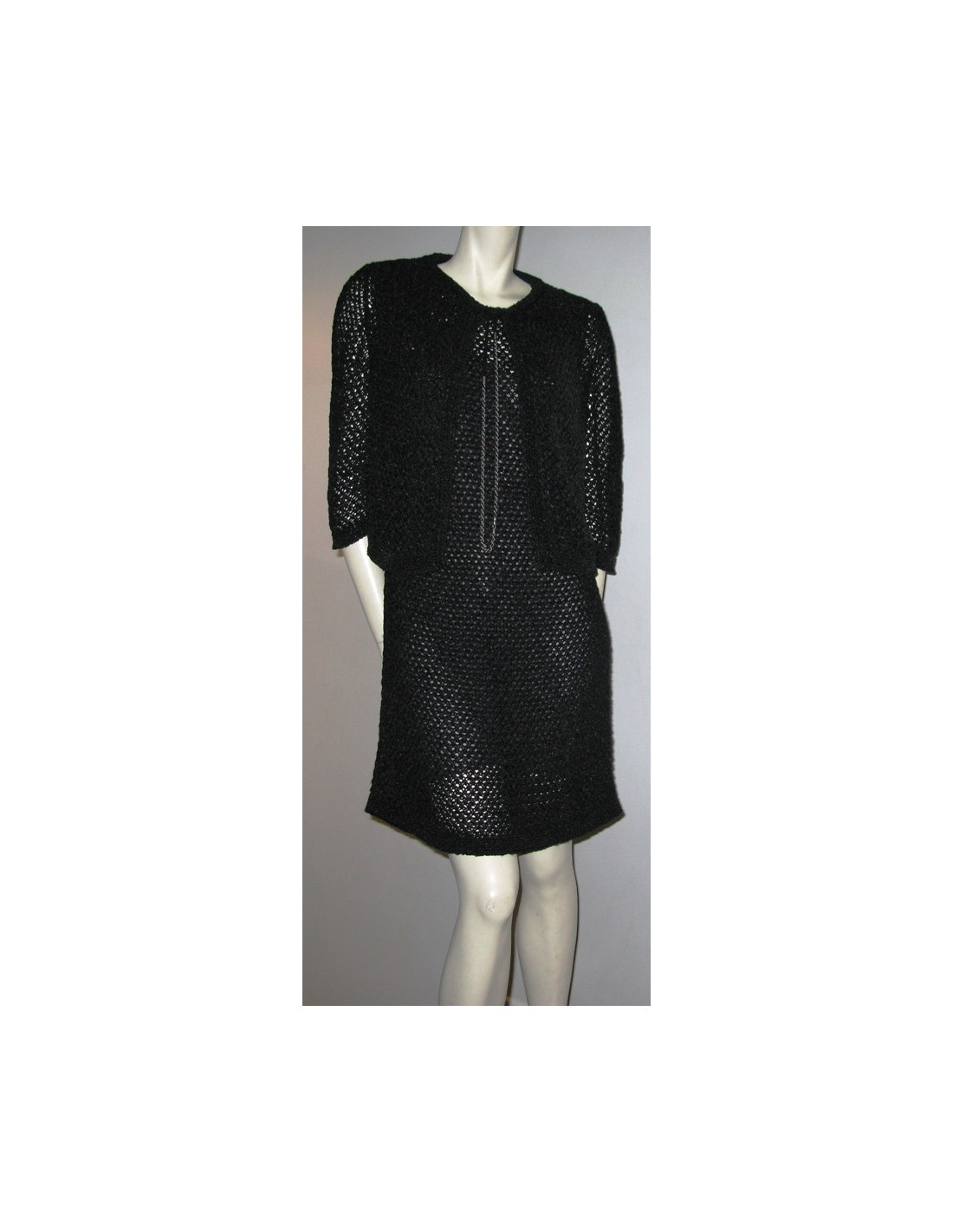 Sublime ensemble robe et gilet en maille noire T 42 CHANEL, Collection récente, très peu porté.