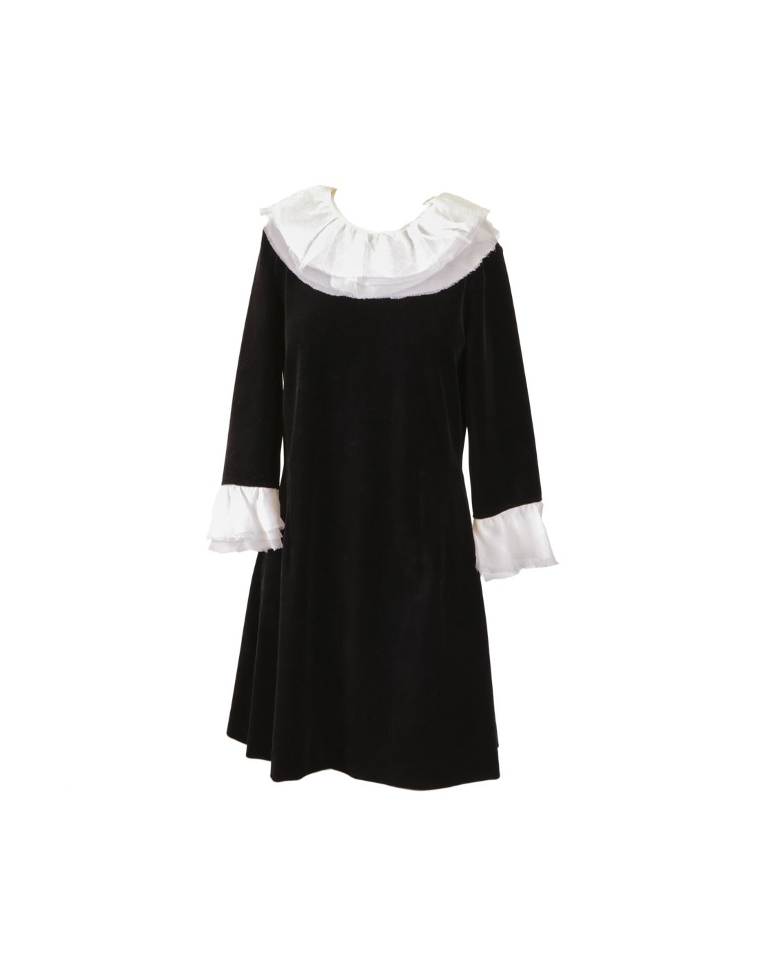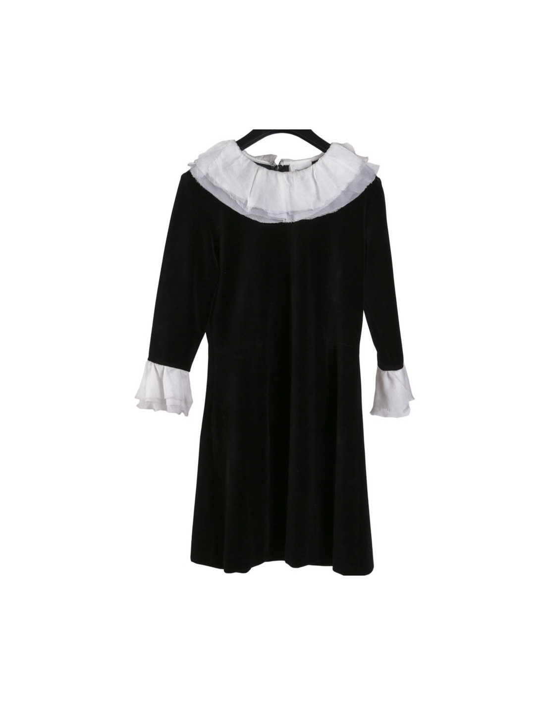en velours noir et soie blanche.Taille non spécifiée (pourrait correspondre à une t 38 FR).