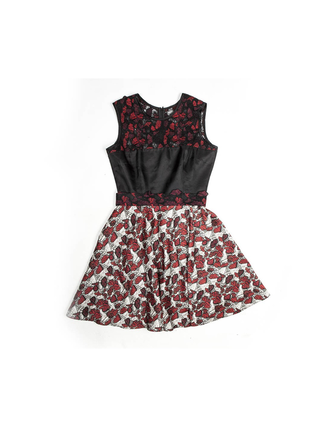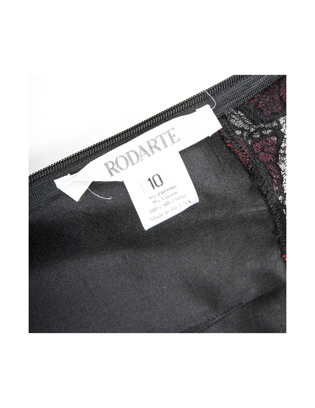 Robe Rodarte. Décolleté en dentelle rouge et noir et le reste de la robe en satin. Ceinture afin de marquer la taille. Fermeture zippée. Taille 10 équivaut à un 40. En très bon état.