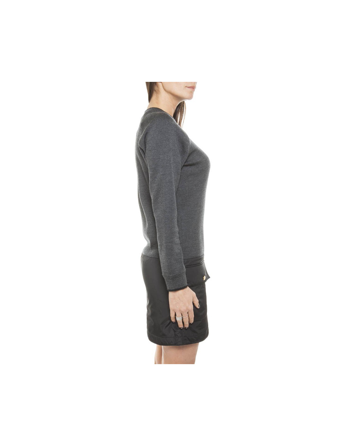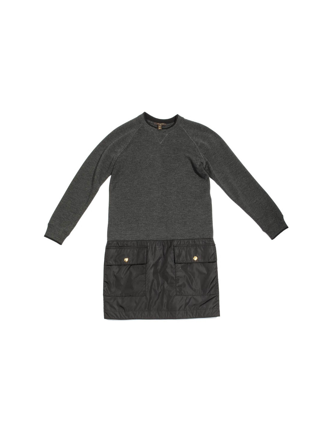 Robe jumper gris chiné en Laine et soie (voir étiquette) Louis Vuitton taille 34/36 FR, Coupe droite, partie inférieure en polyamide imperméable, composée de deux poches à pression dorées siglées "Louis Vuitton".