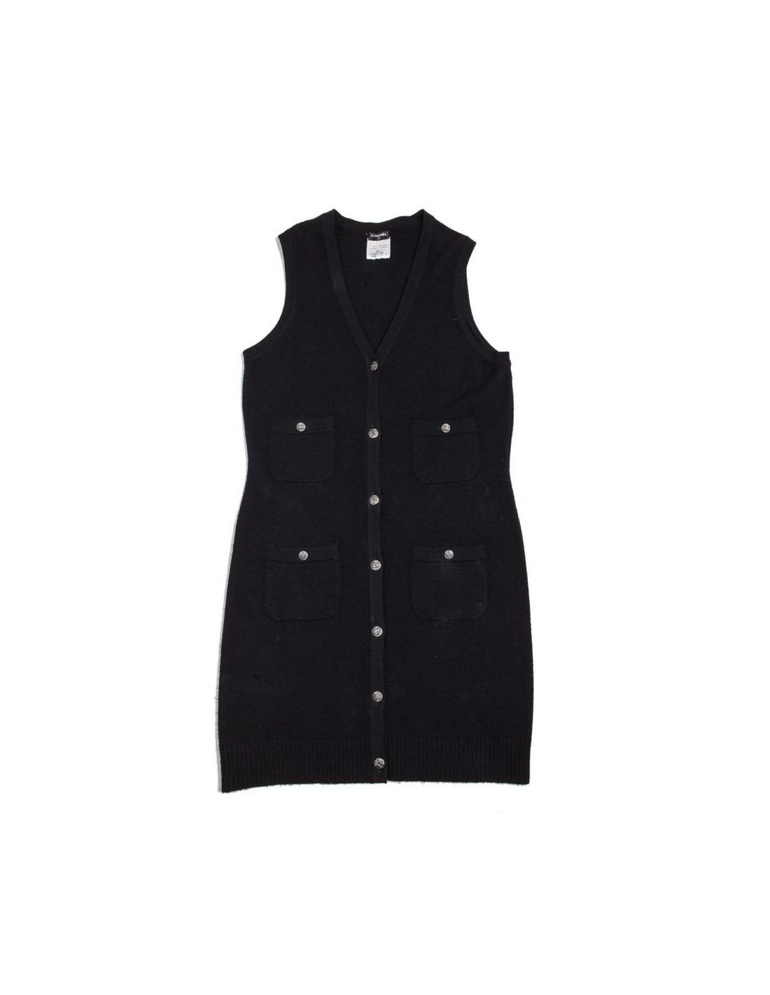 Long gilet ou robe en cachemire noir T 42 FR Chanel.