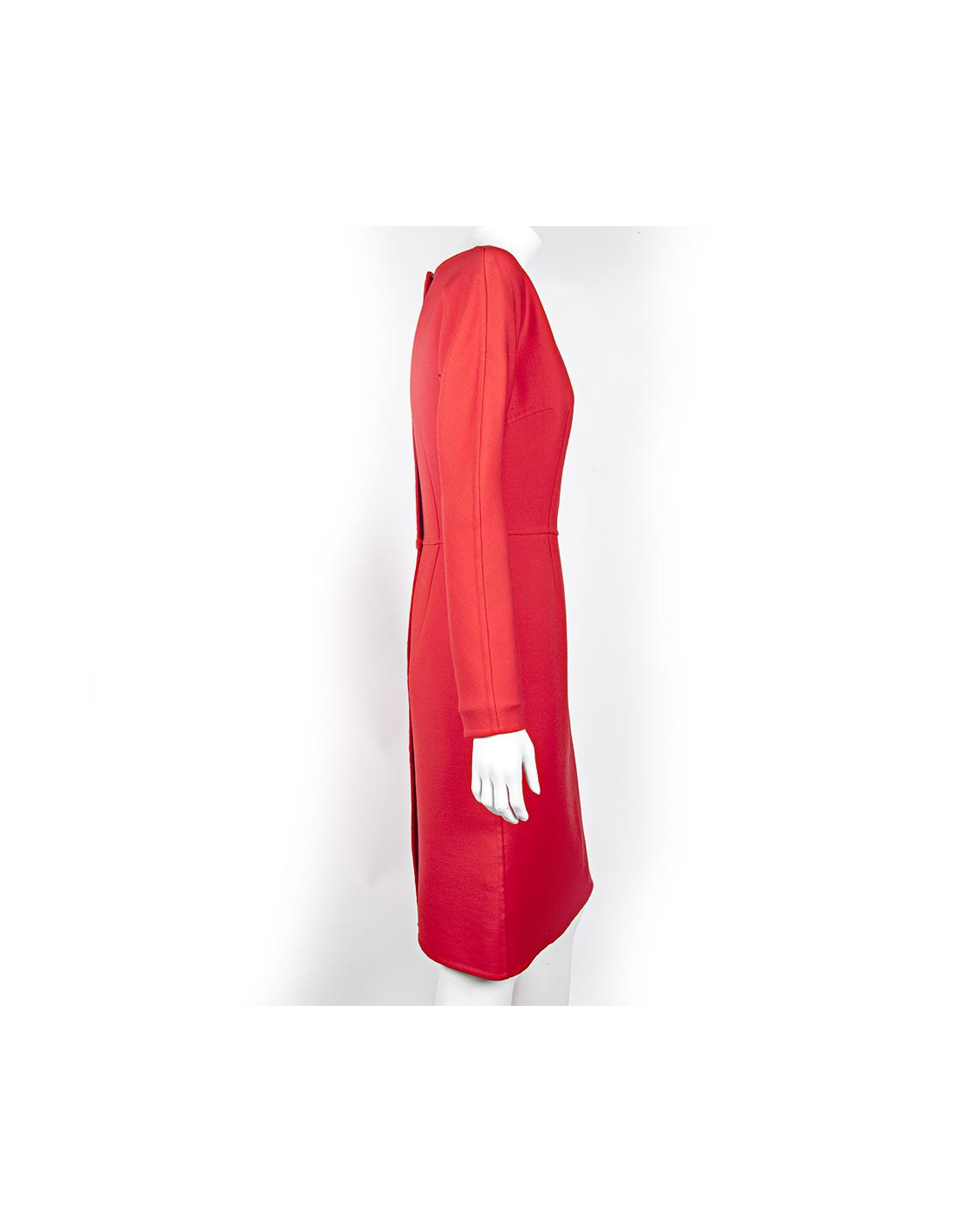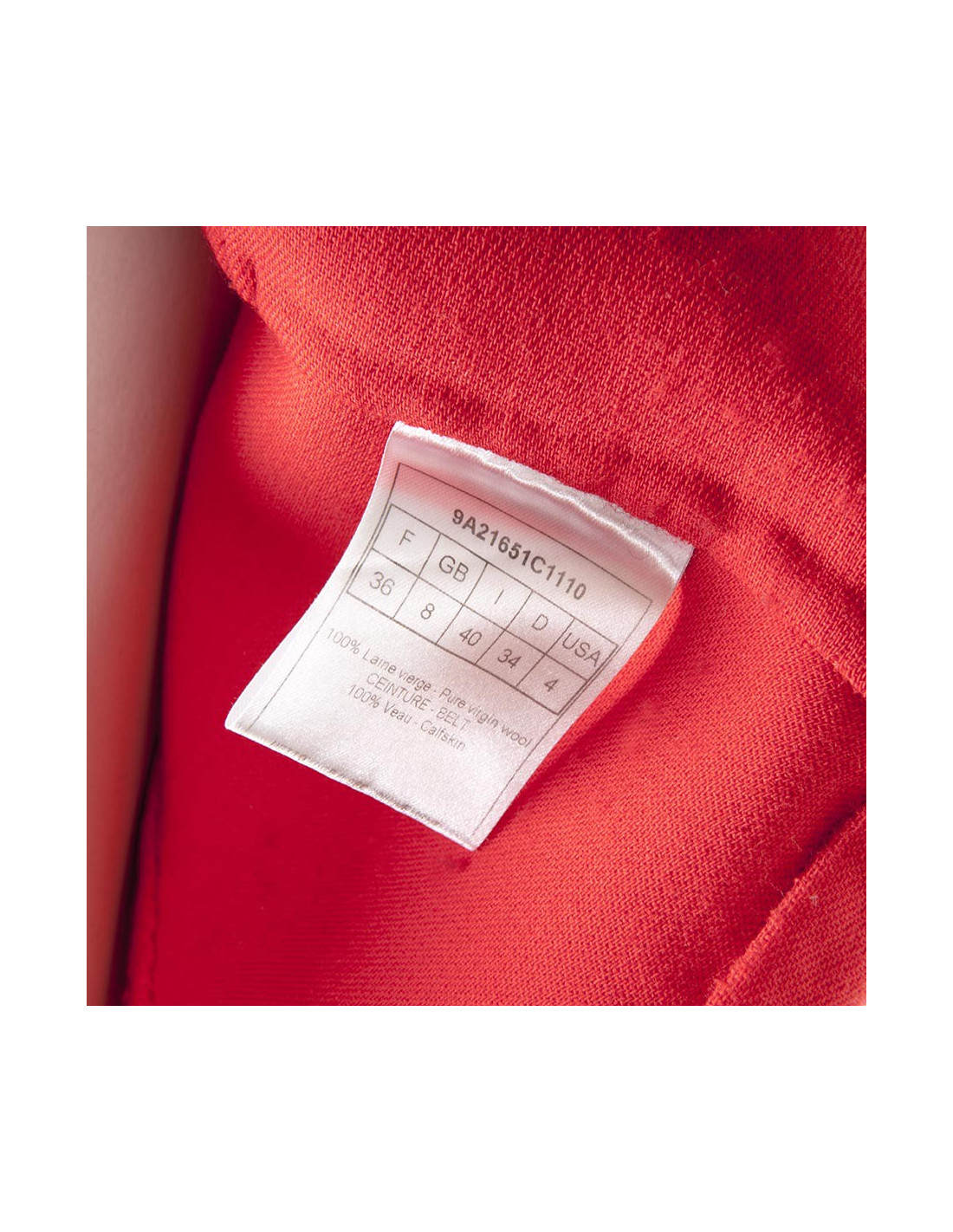 D'un magnifique rouge vif, elle se ferme grâce à une rangée de douze boutons siglés "Dior" au dos, accompagnés de deux niveaux de pression (voir photo).