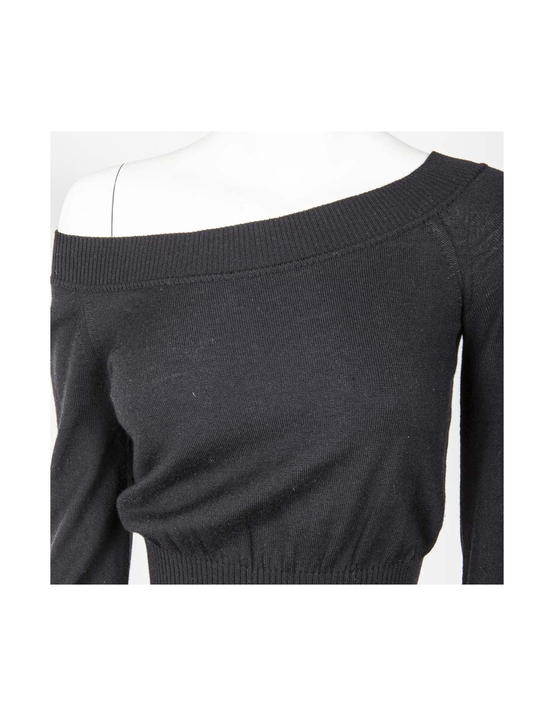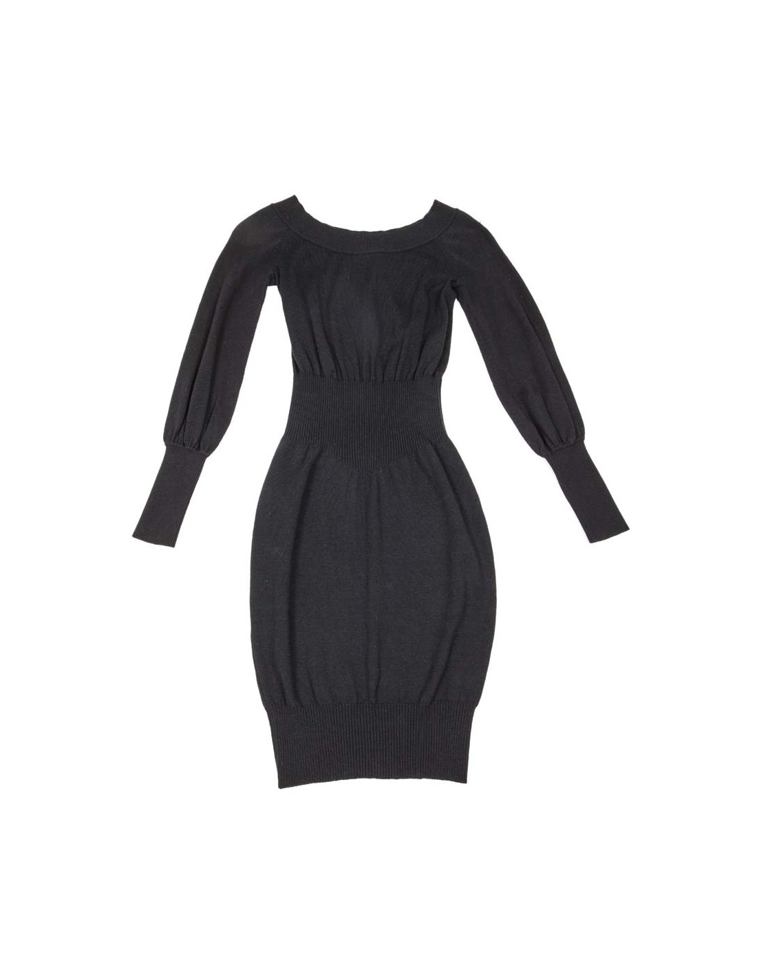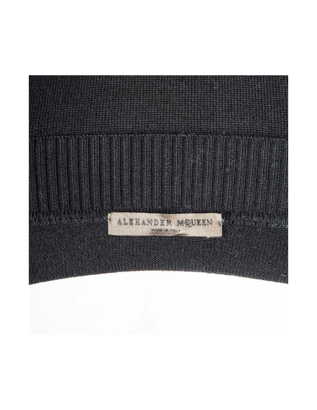 Robe en laine noire Alexander McQueen taille XS. Cintrée, elle est renforcée à la taille, aux poignets et au col, large et arrondi, créant sur le buste et la partie inférieure un élégant drapé et un effet bombé au niveau des manches et de la partie inférieure de la robe.