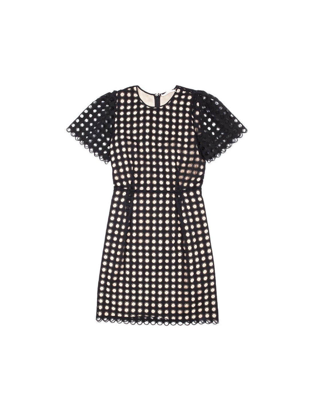Robe fourreau à manches courte en coton noire et beige Chloé taille 34. Doublée de soie beige, la robe est discrètement zippée au dos. La partie supérieure est en coton et polyester. Très bon état