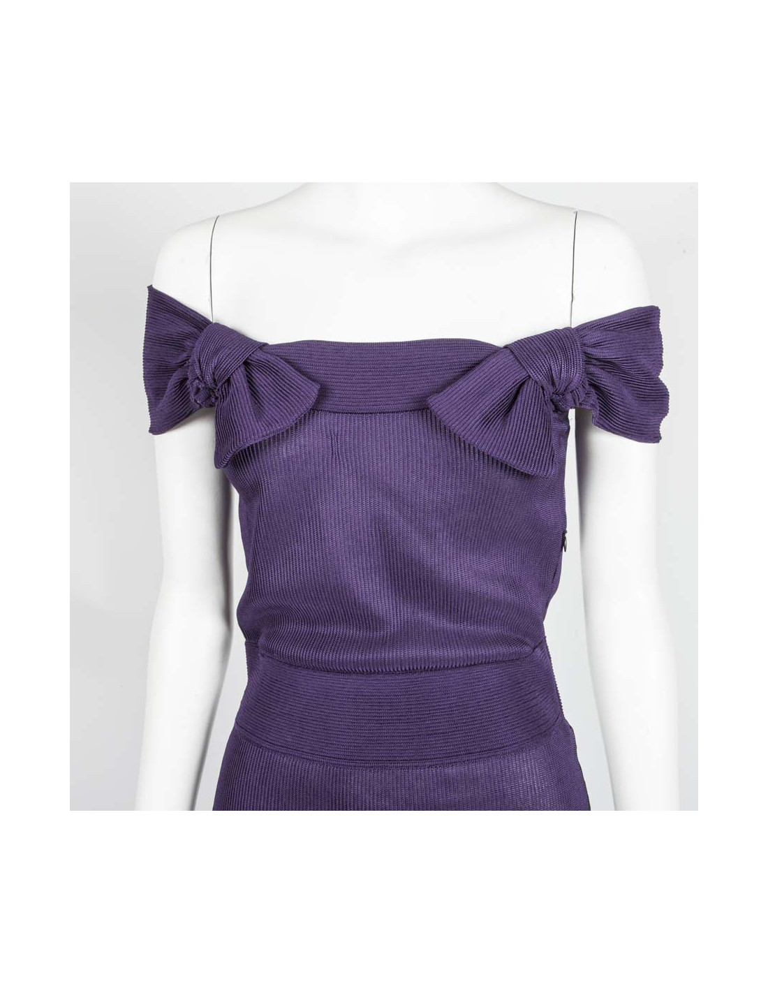 De couleur violet foncé, elle se porte près du corps sans doublure. Elle se ferme par une fermeture éclair sur le côté :16 cm de long