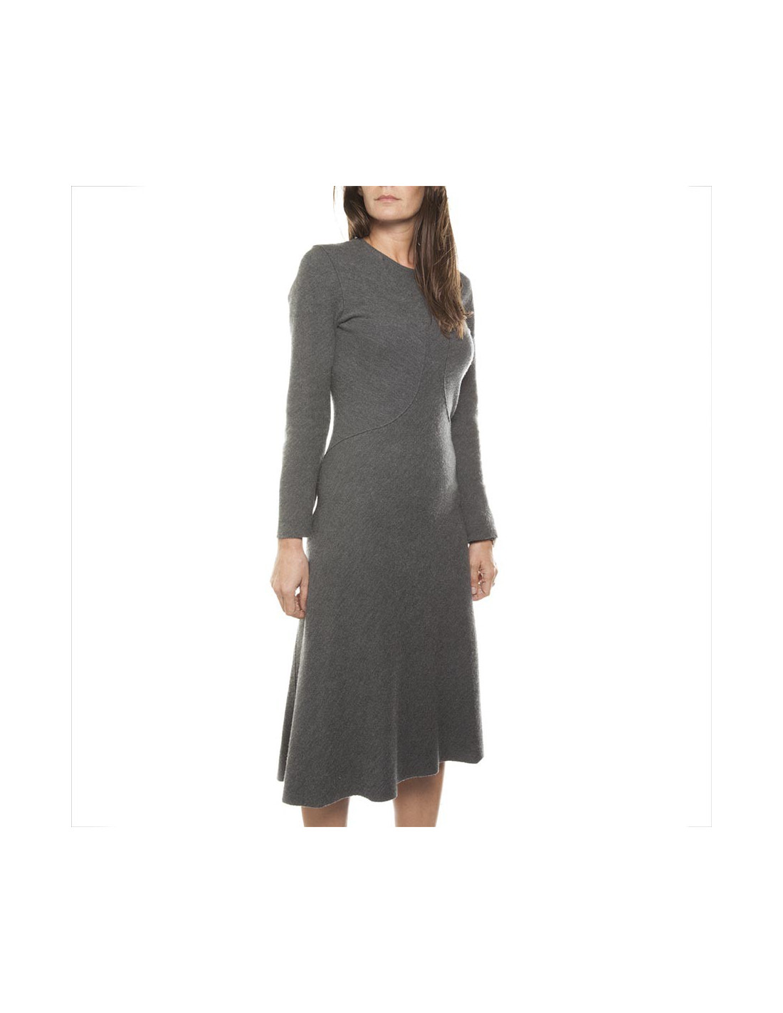 Robe Bottega Veneta en coton et cachemire (étiquette de taille et matière), grise coupé en biais, en bon état (légèrement feutré sous les aisselles), se ferme dans le dos à l'aide d'une fermeture éclair.