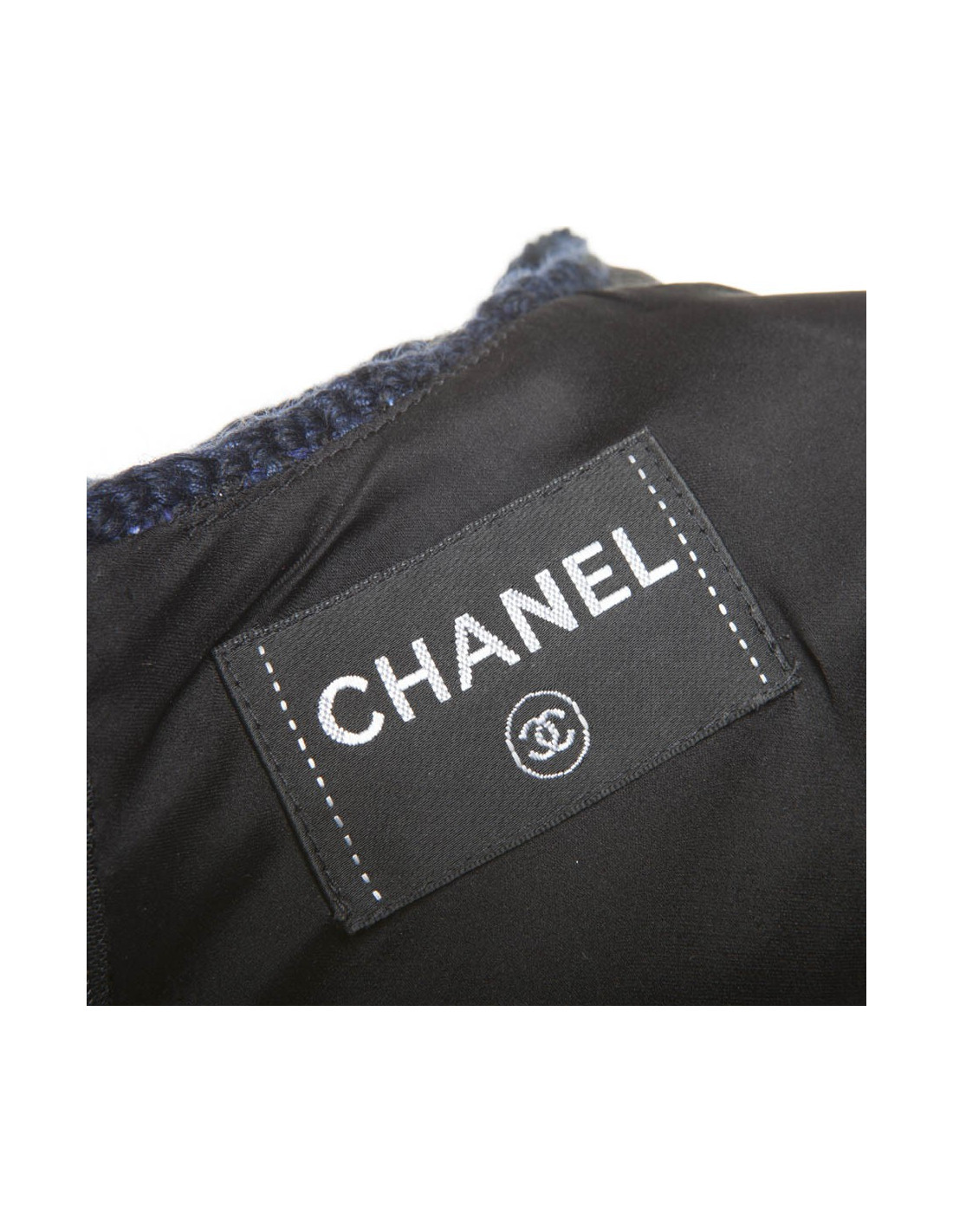 Robe Chanel de la célèbre Collection Paris-Shanghaï, en tweed de soie et laine bleu nuit et noir. En très bon état. Absence d'étiquette de taille, mais correspond à un 38FR.