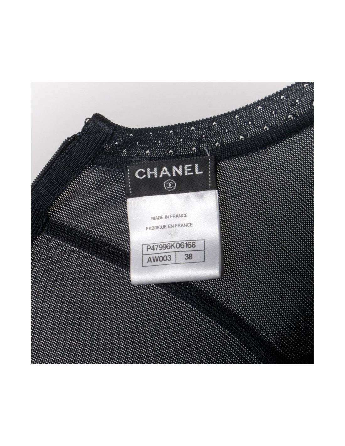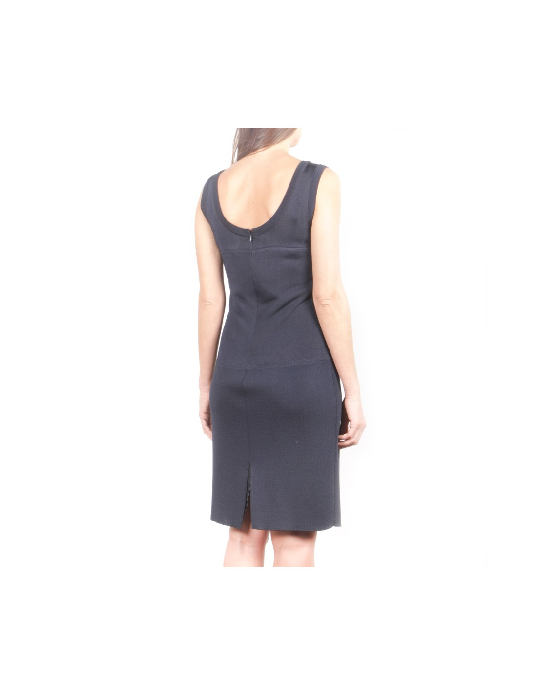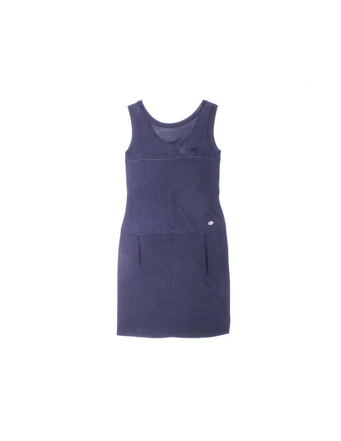 Robe Chanel en maille bleue marine se porte avec son fond de robe de la même couleur.