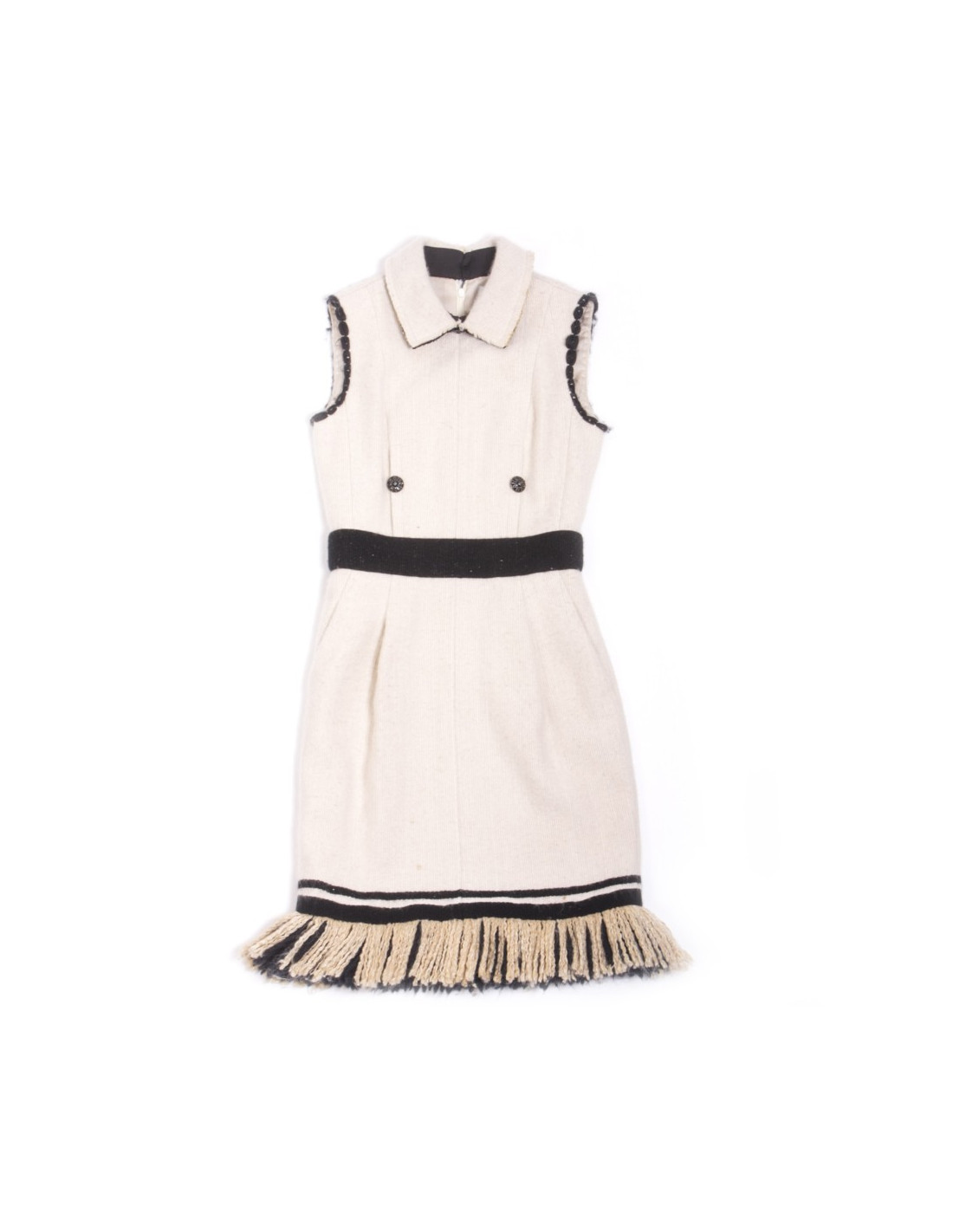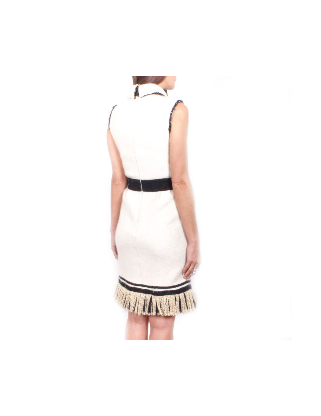 Superbe robe d'hiver Chanel en cachemire et soie blanc cassé sans manches.