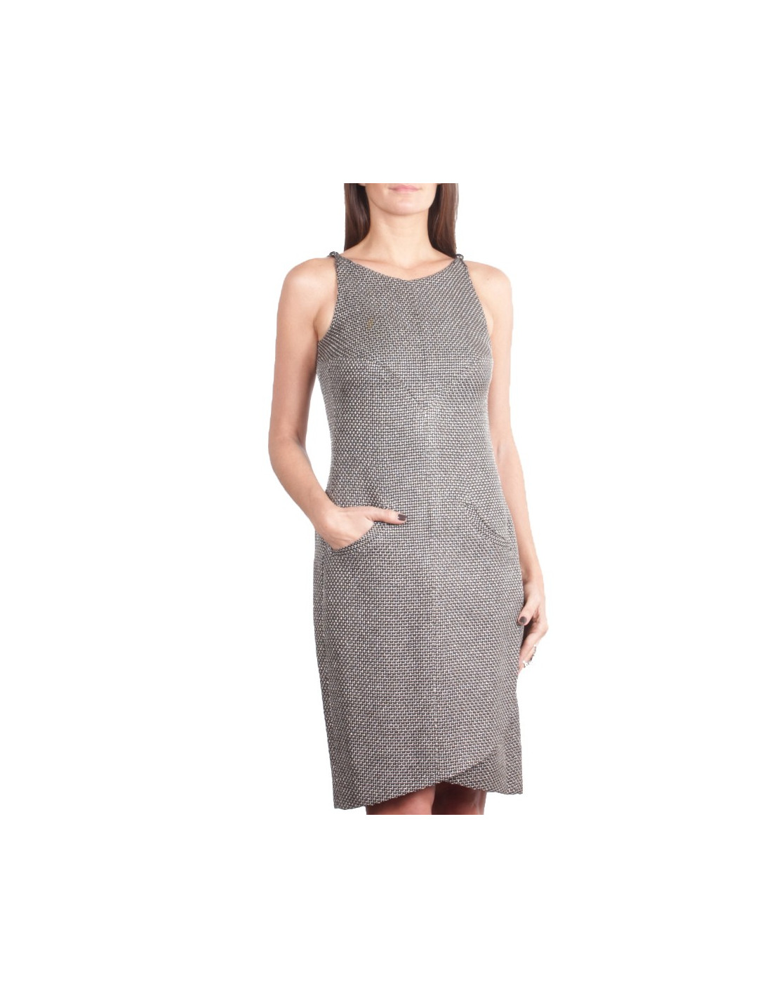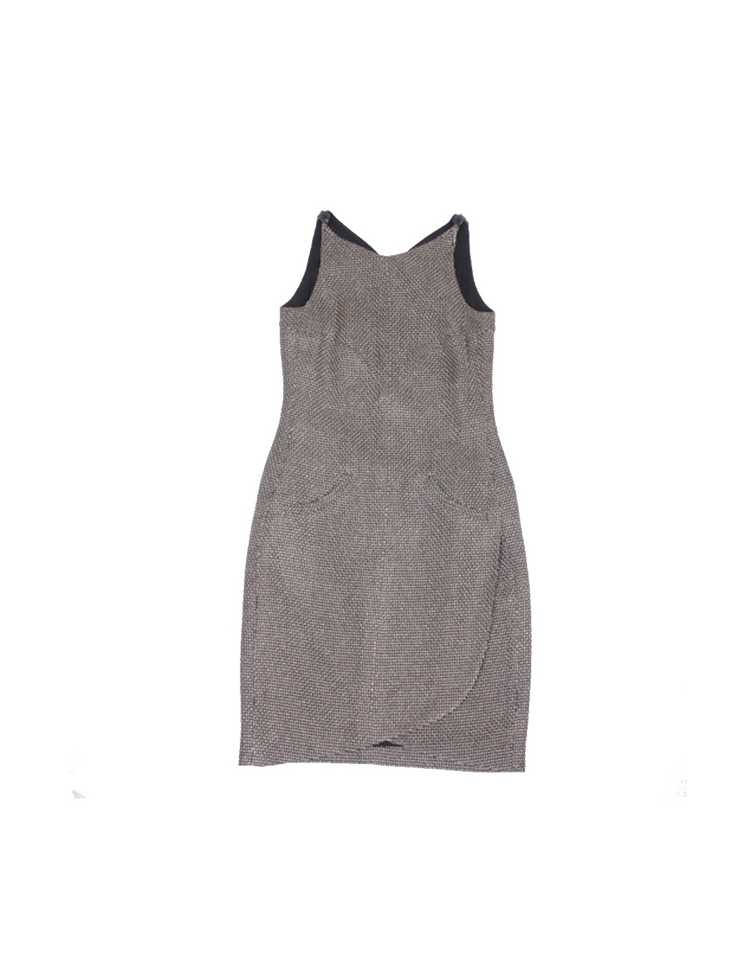 Superbe robe CHANEL entièrement tissé de fils lamés argent et noir.