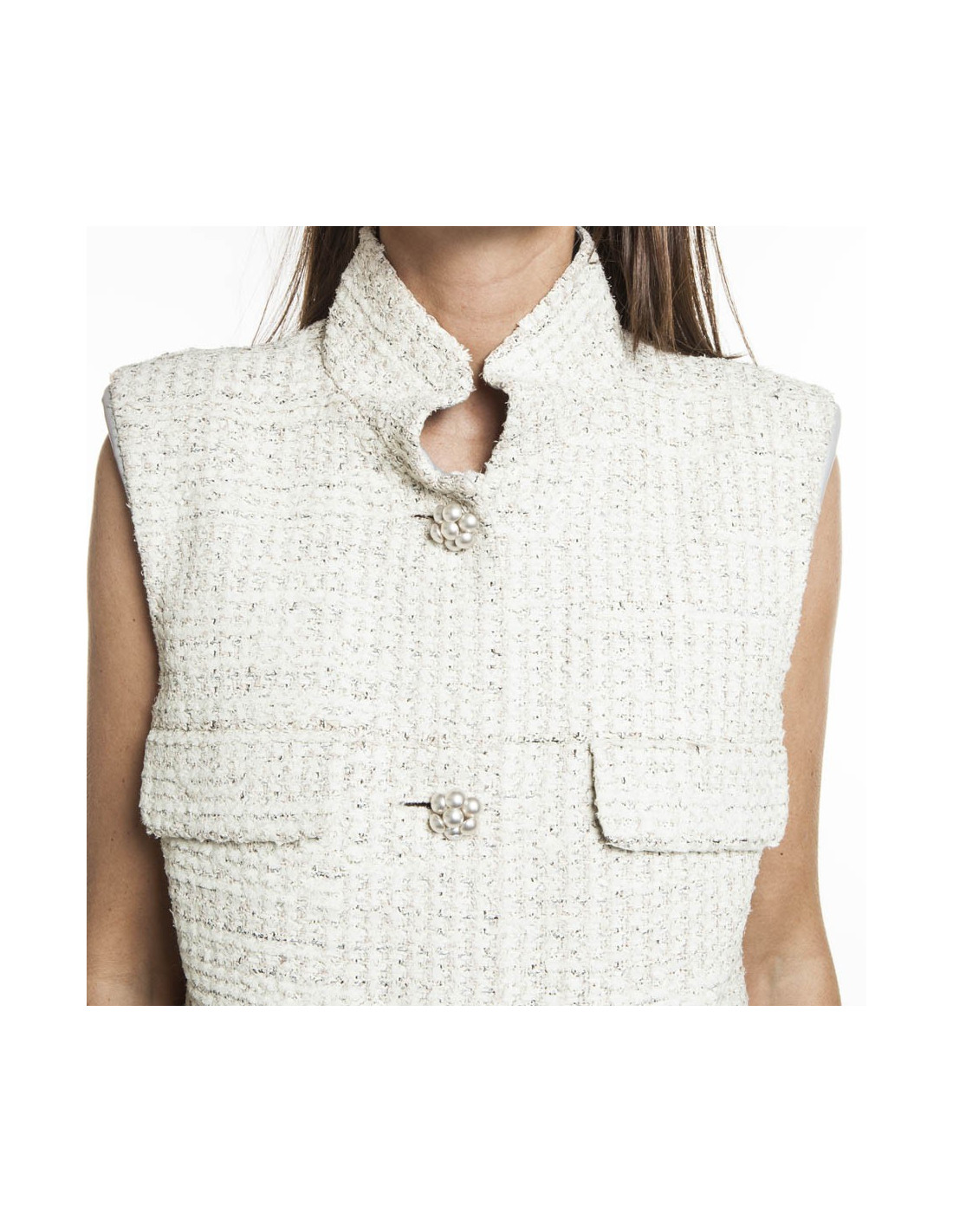 Elle se ferme à l'avant à l'aide de 5 boutons en perlés en forme de camélias siglés CC.