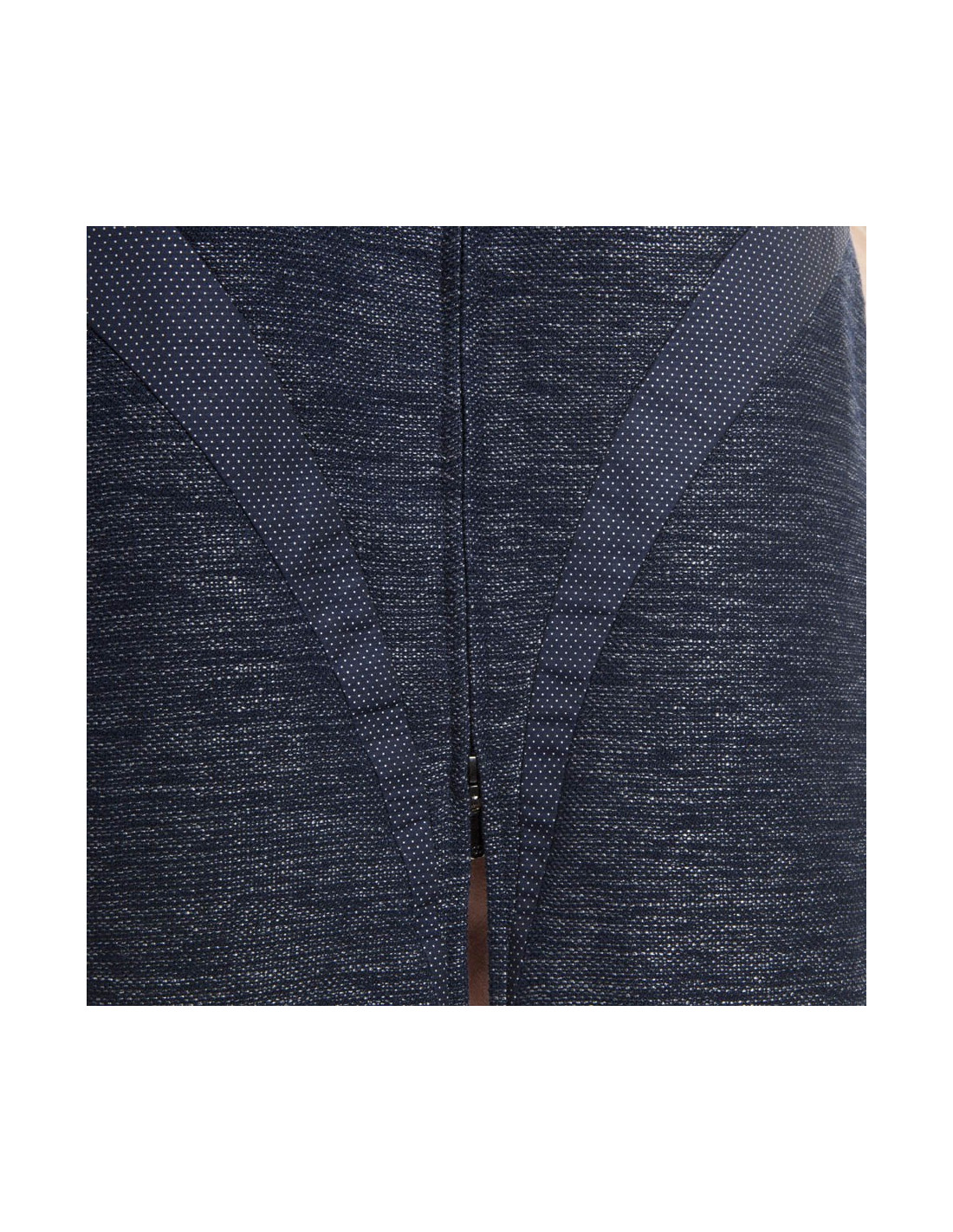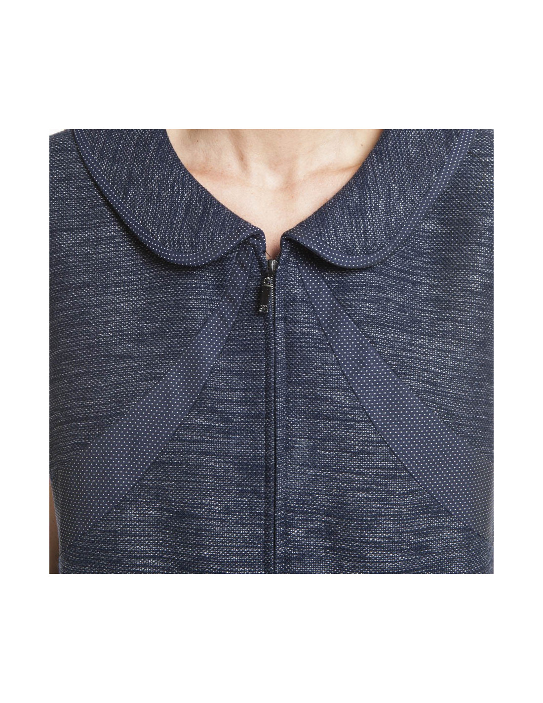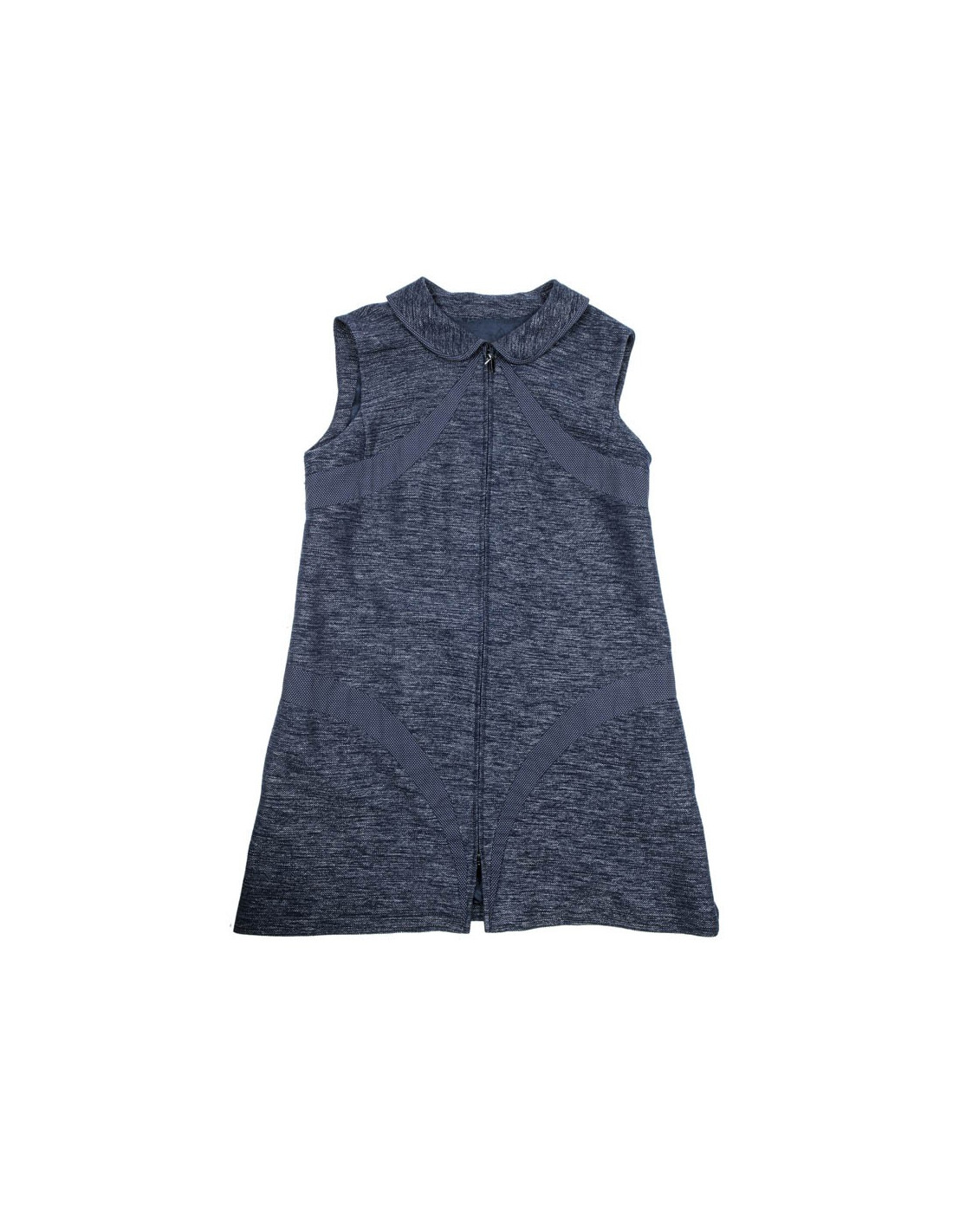 Robe CHANEL sans manches en coton et laine bleu chiné légèrement brillant.