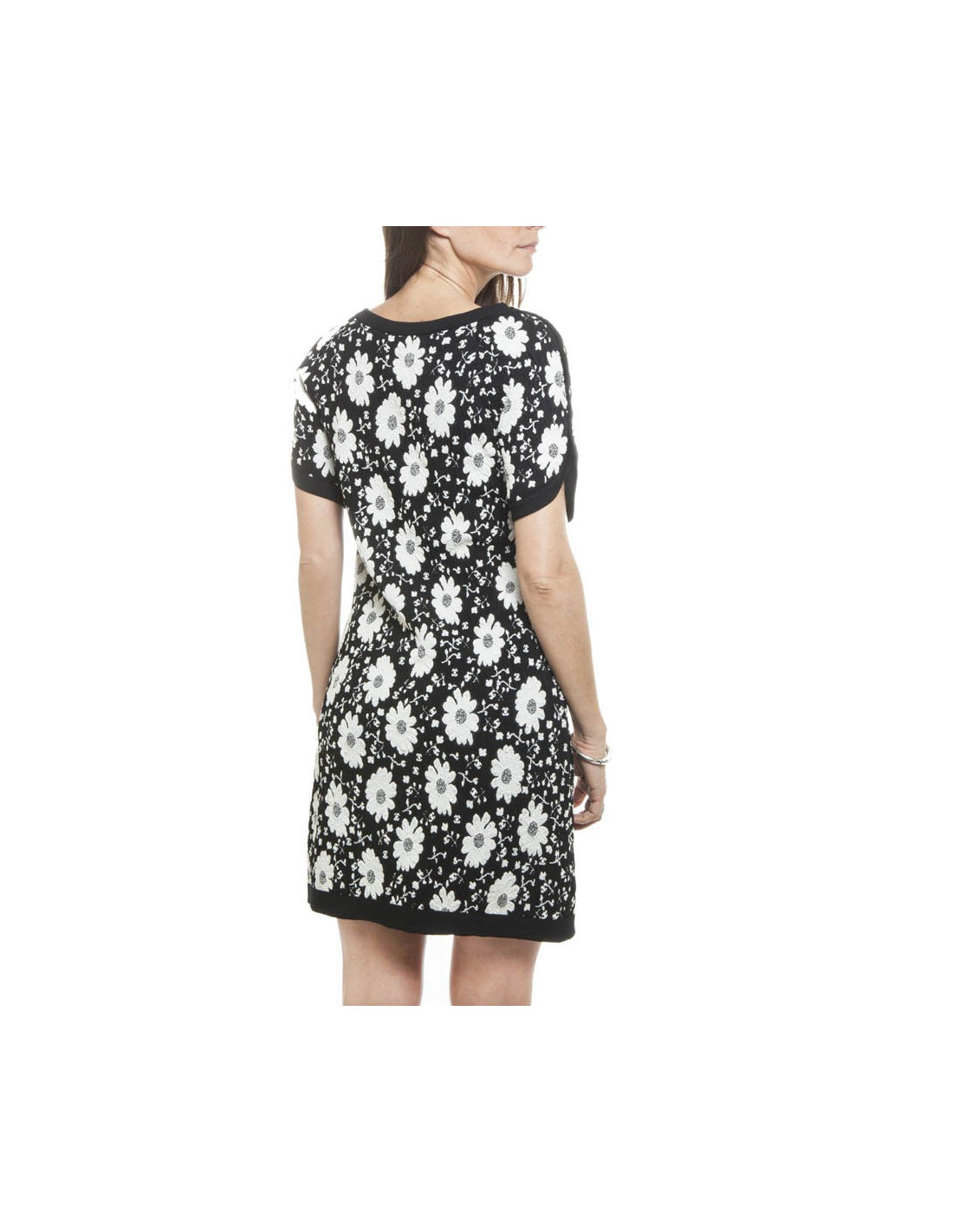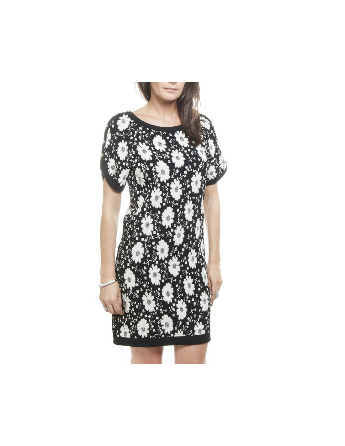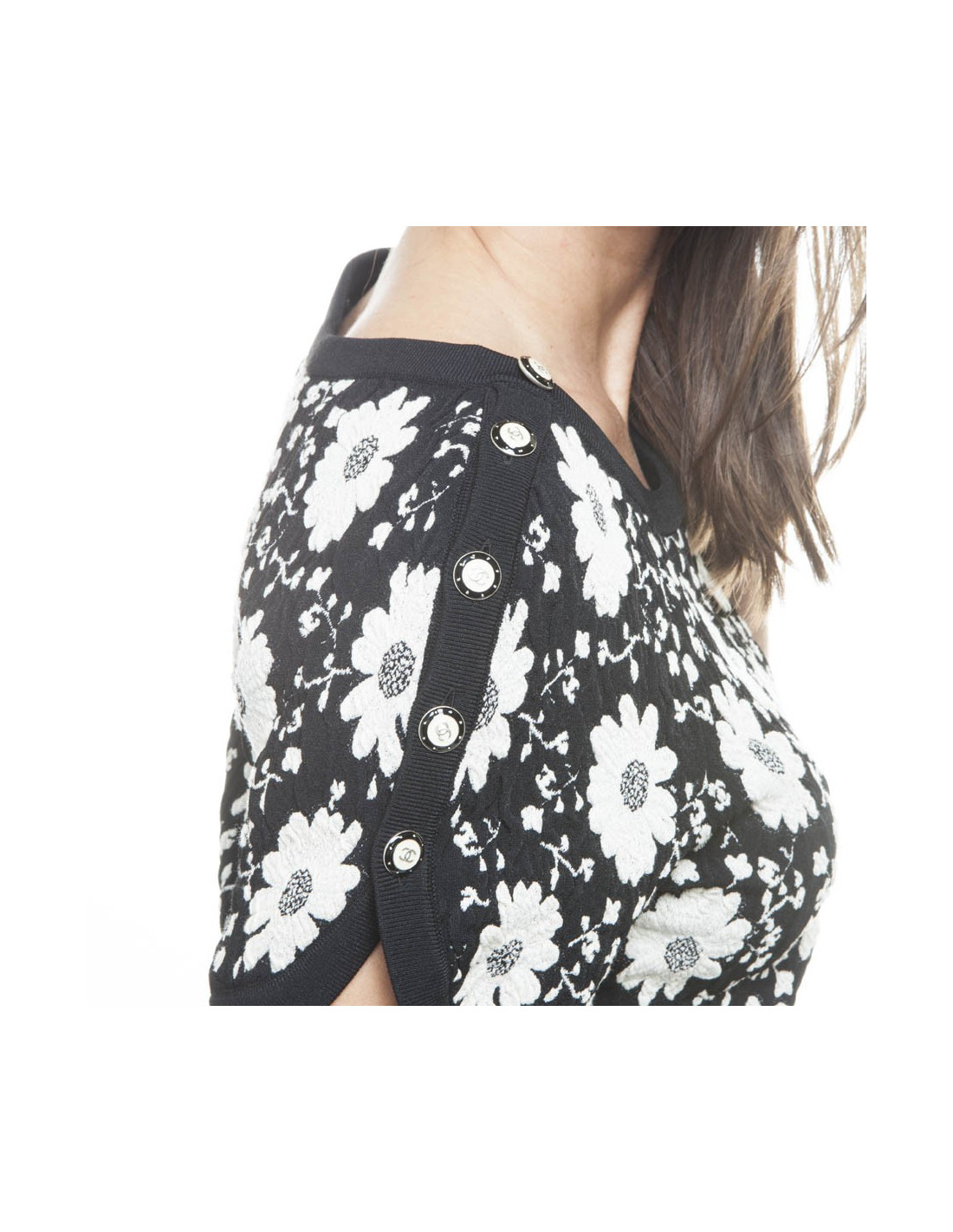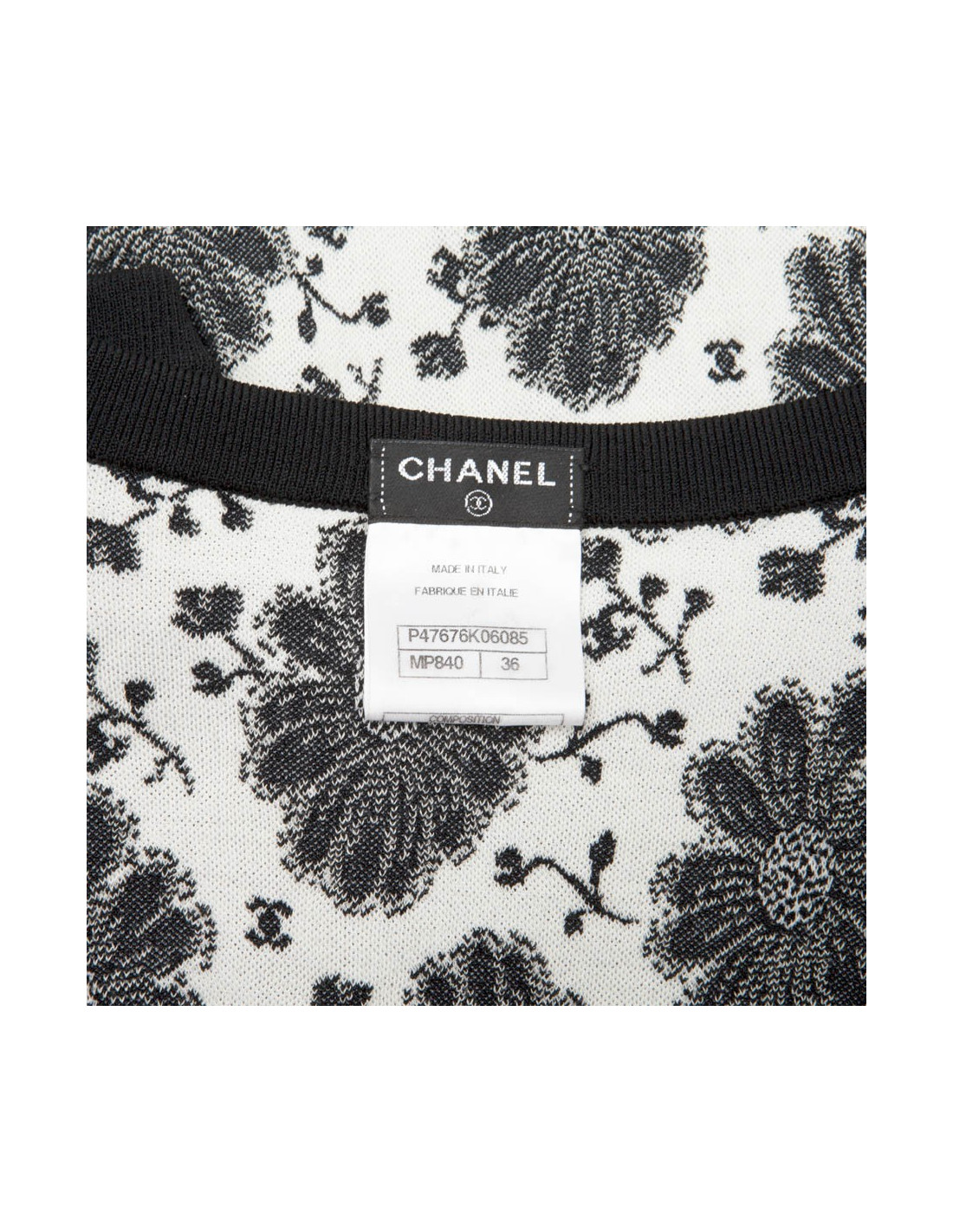 Robe de la Maison Chanel à fleurs noires et blanches. Taille 36. En coton et viscose (stretch).