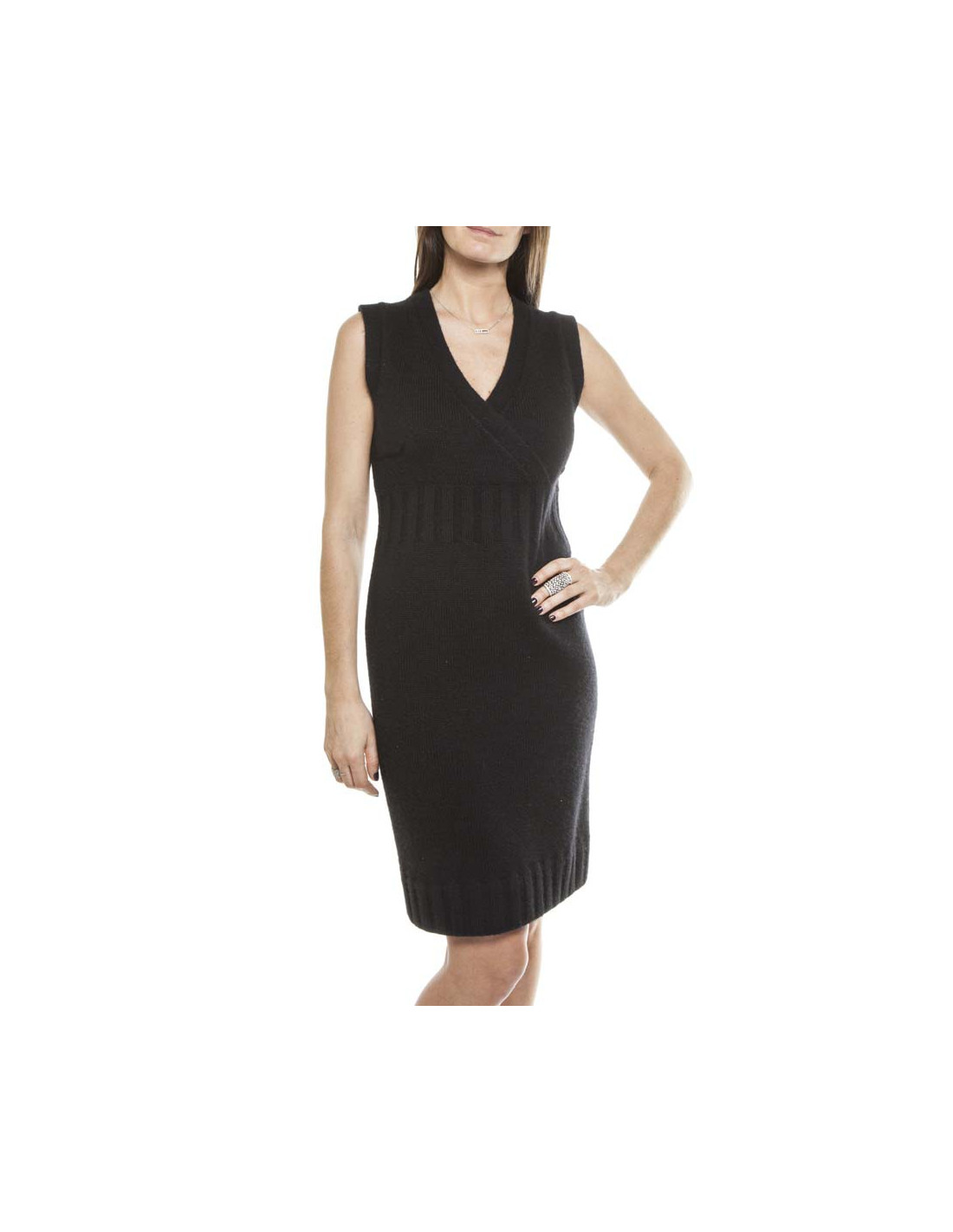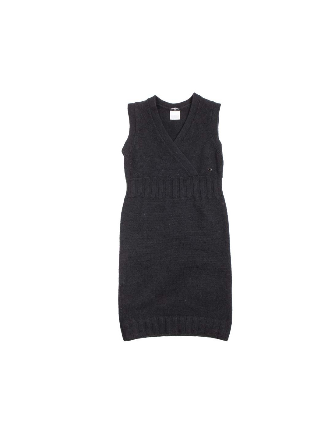 Robe CHANEL T36 en cachemire noir sans manche