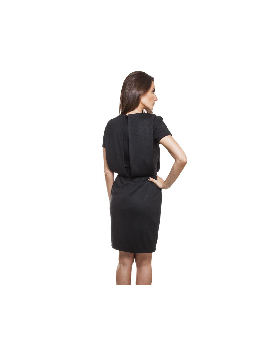 Dimensions à plat : largeur d'épaule 34 cm, largeur sous les aisselles 42 cm, taille 34 cm, longueur de manche 15cm, hauteur totale 94 cm, ampleur du bas 45 cm.