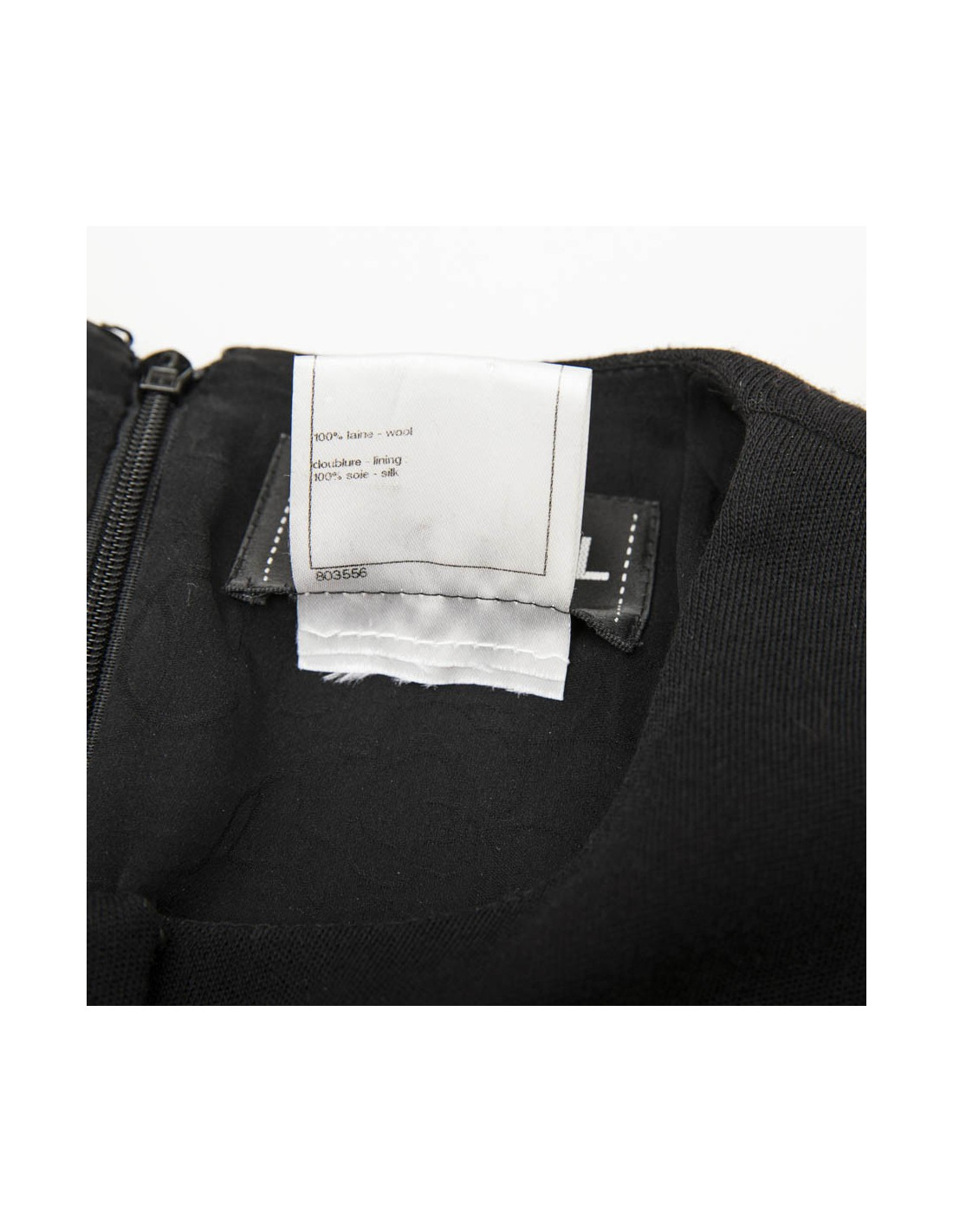 Robe Chanel taille 38 en jersey de laine noir. Doublure en soie 100% noire monogram. Se ferme à l'aide d'une fermeture à glissière 61 cm et d'un bouton noir. Made in France. Elle a 2 poches fendues sur les côtés. En très bon état.
