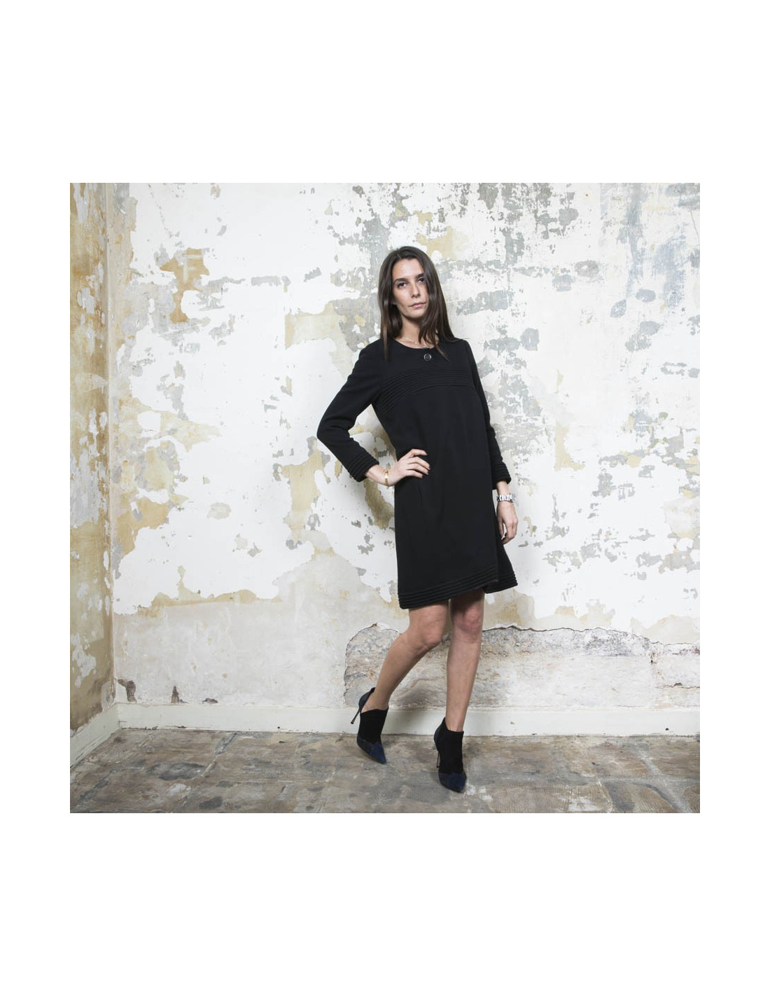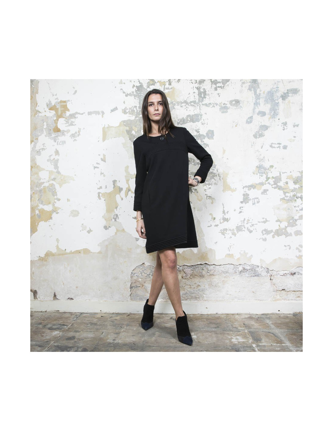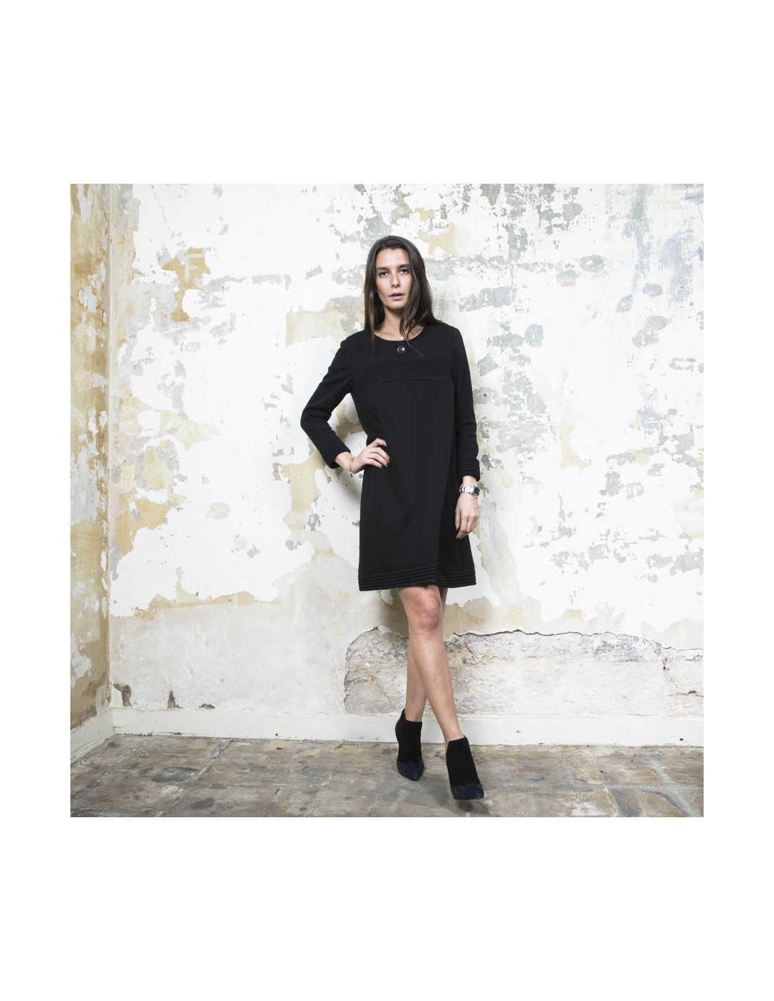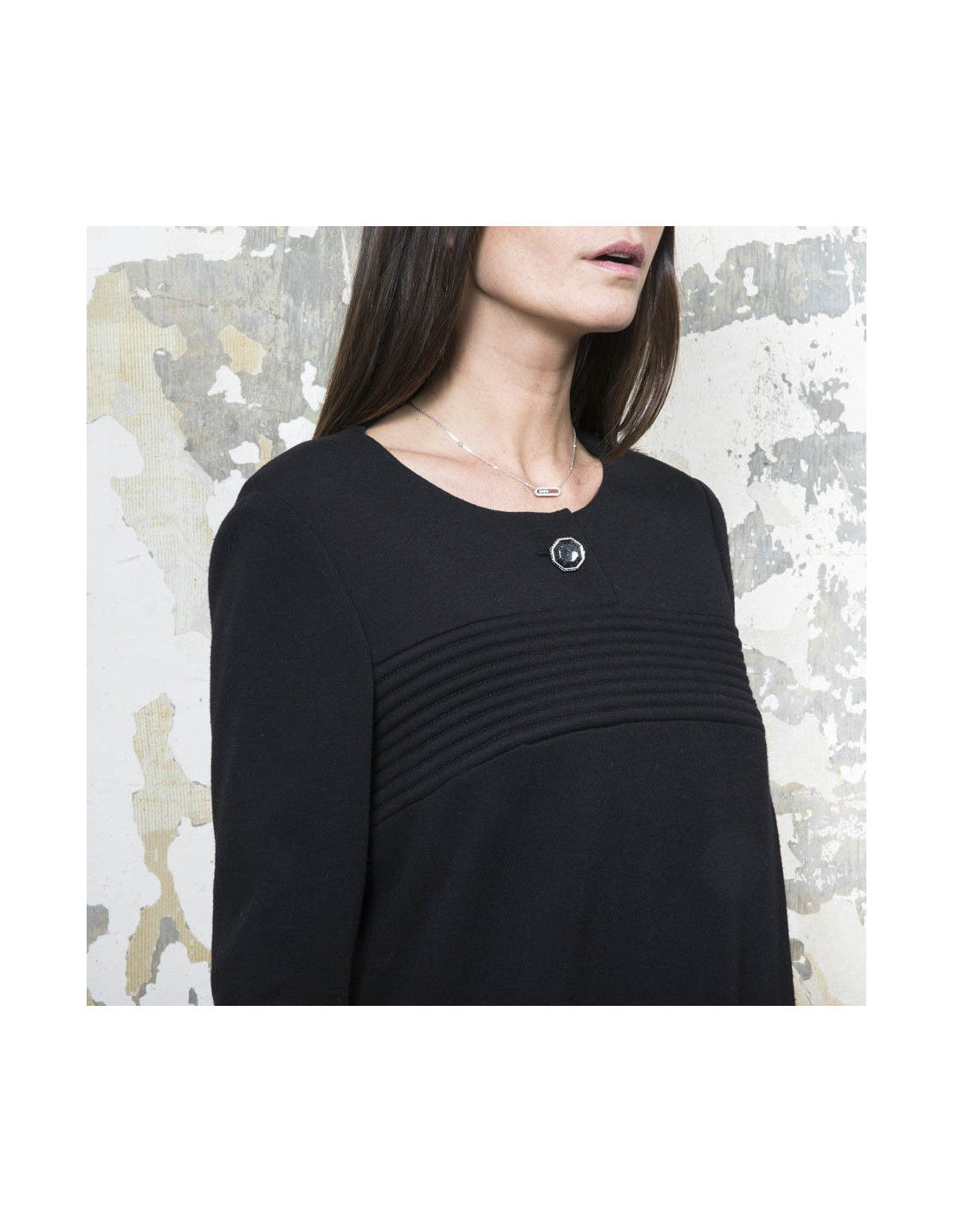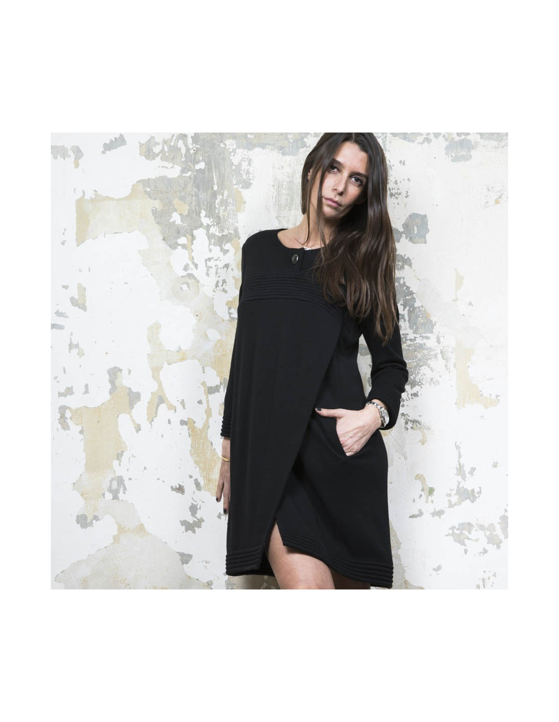 Dimensions à plat : Largeur des épaules 38 cm, largeur sous les aisselles 45 cm, ampleur du bas 50 cm, hauteur totale 87 cm, longueur des manches 50 cm.
