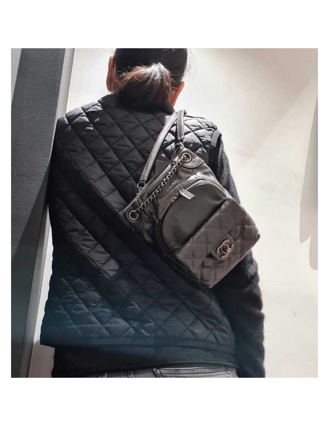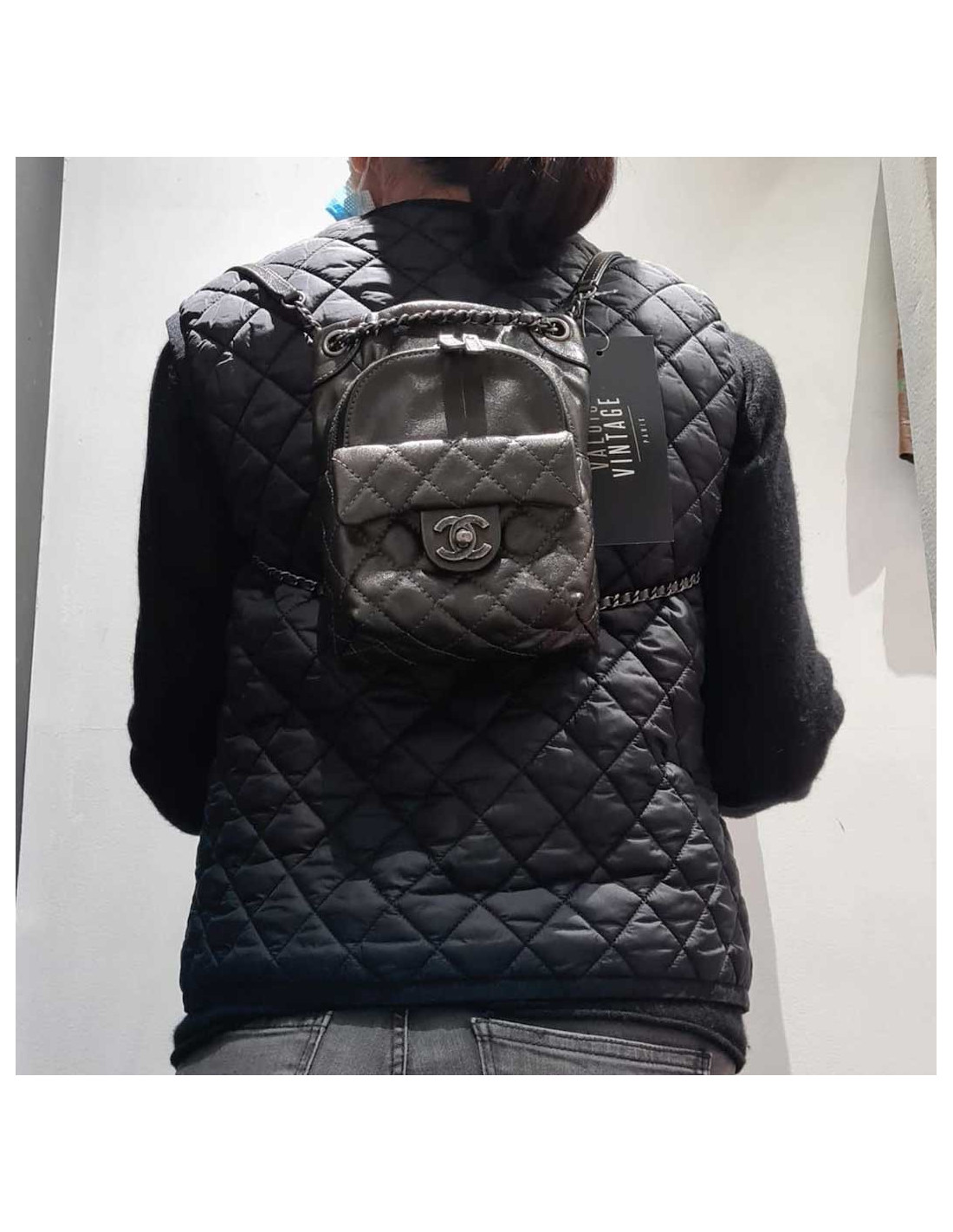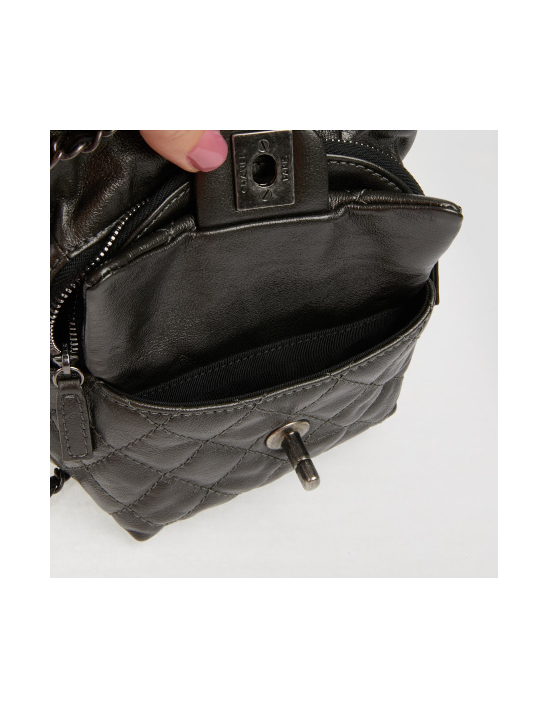 Mini sac à dos CHANEL cuir gris anthracite