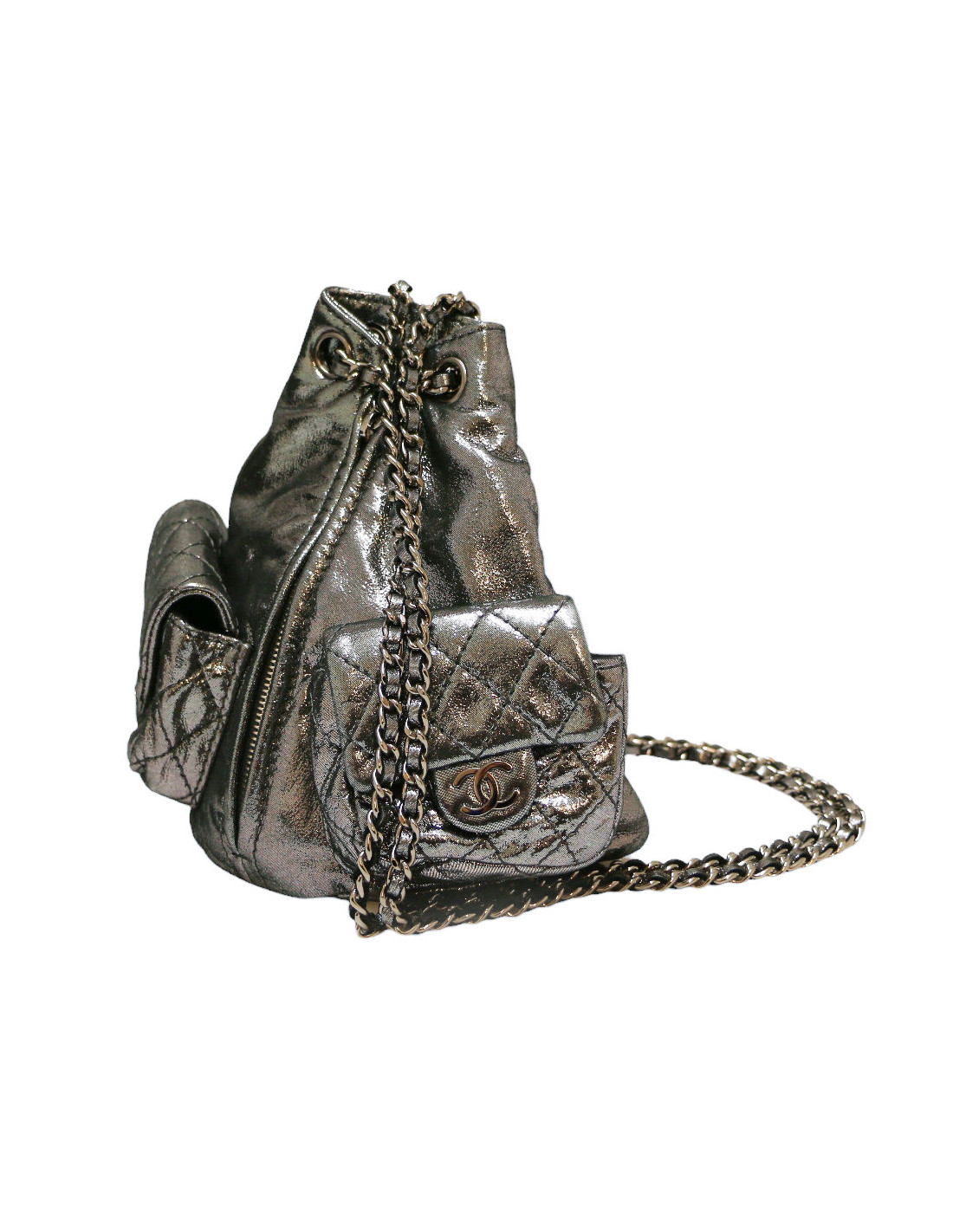 Mini backpack CHANEL cuir argentCondition : très bon état