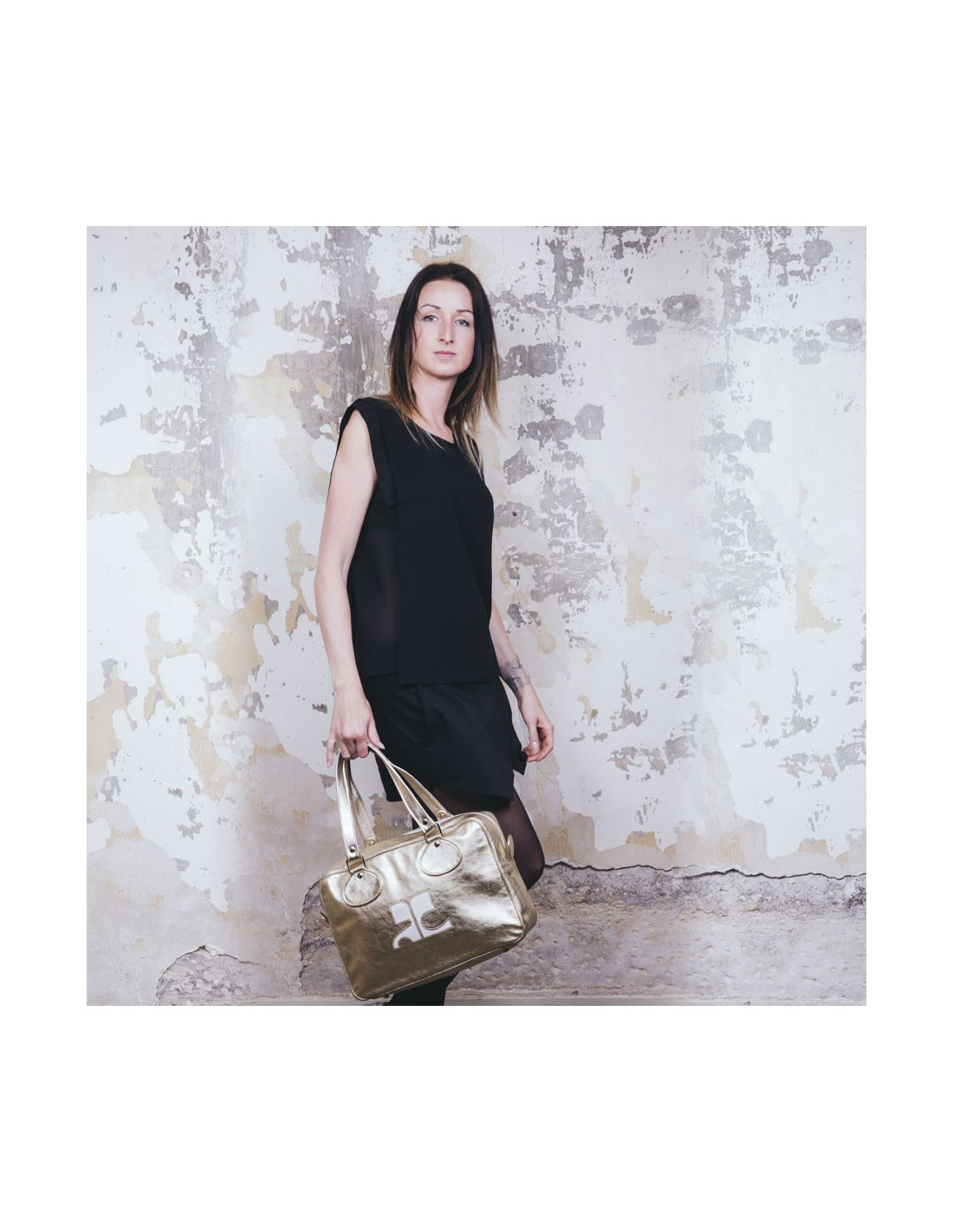 Sac COURREGES en cuir d'agneau lisse souple doré