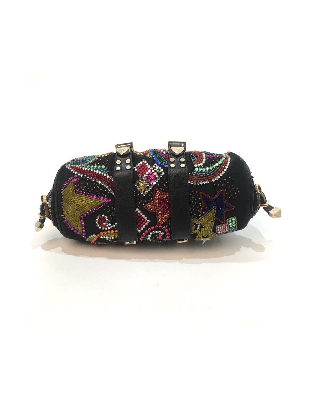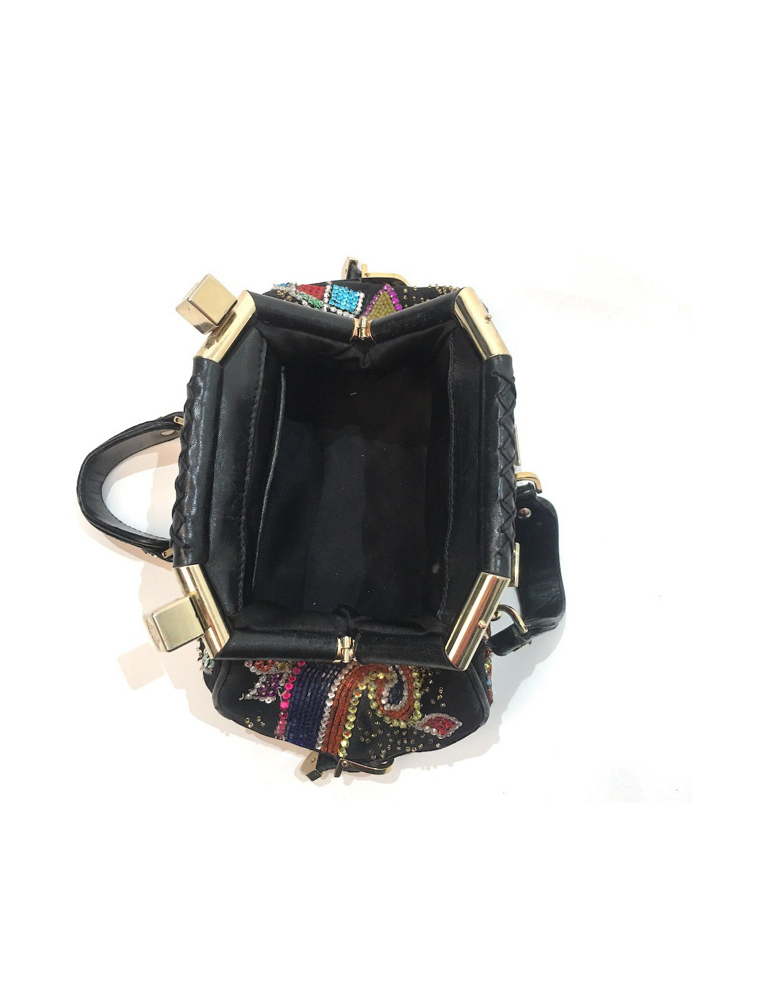 Sac de fabrication italienne avec les mesures suivantes : longueur 22 cm, hauteur 12 cm et profondeur 11 cm. Le sac est bon état, traces d'usure sur les dorures, manque perles et strass sous le sac.