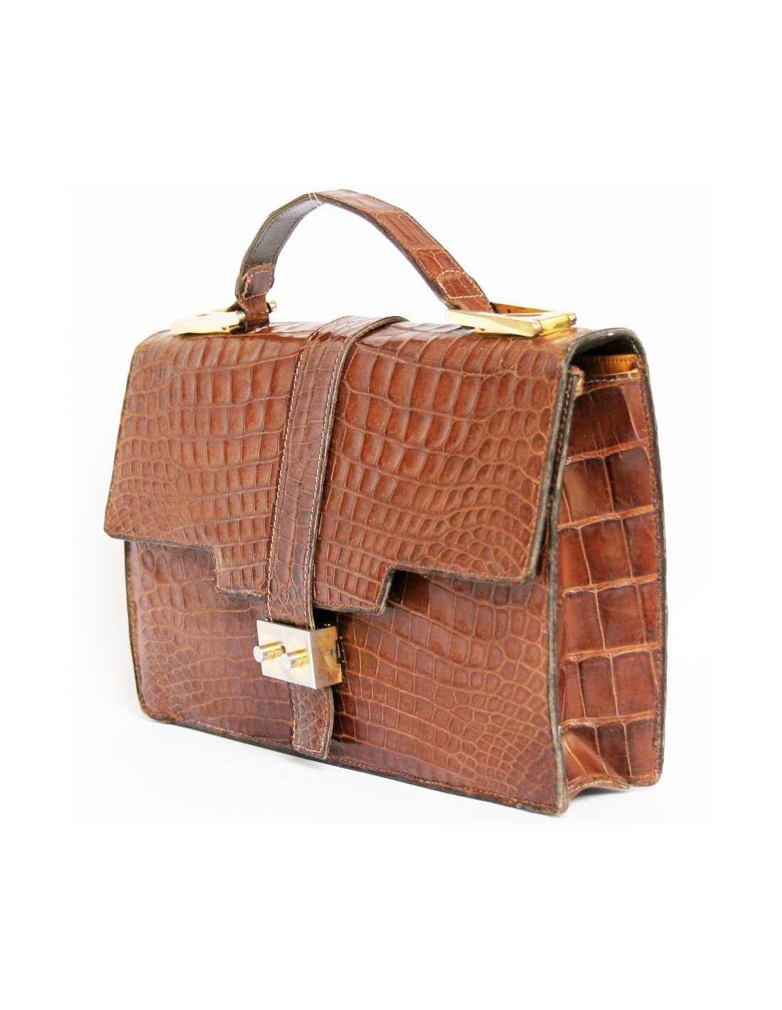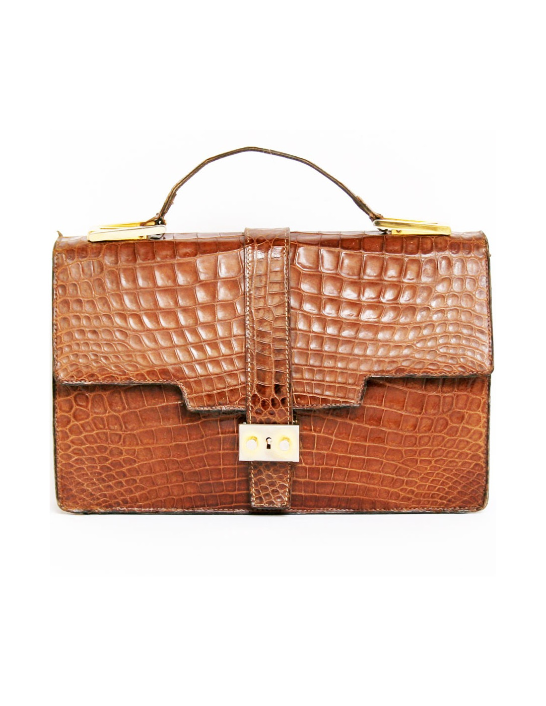 Sac ANONYME cartable en croco vintage marron