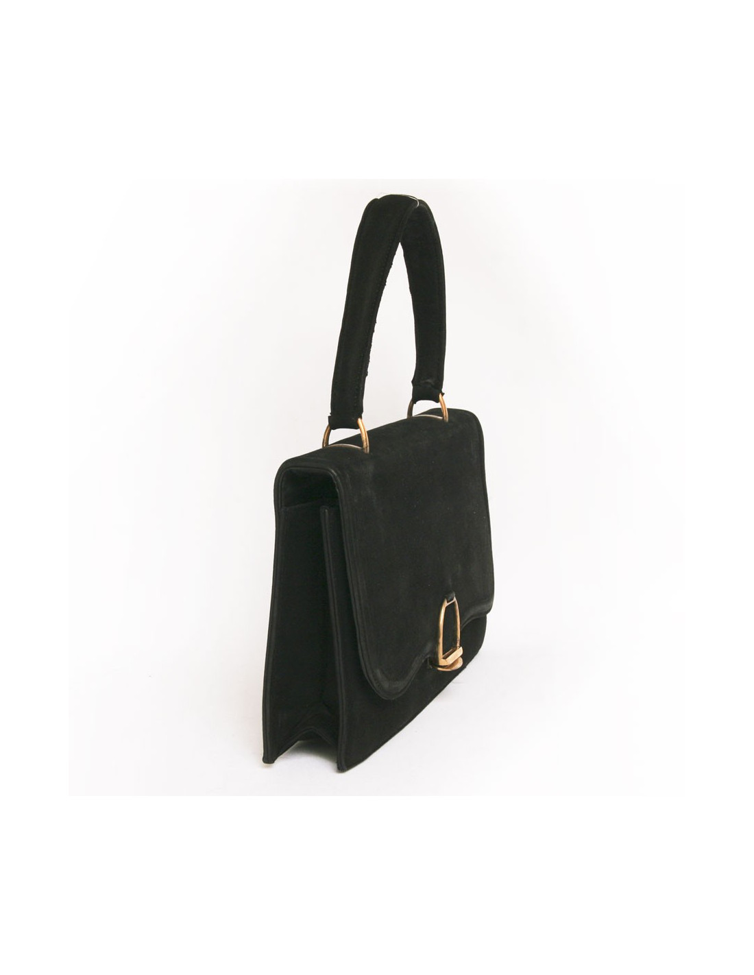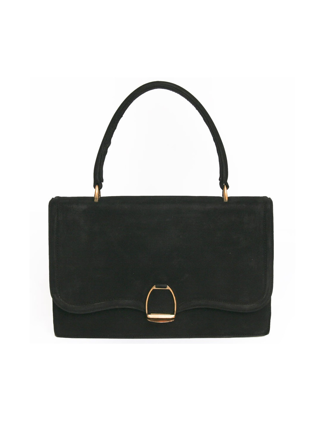 Sac Hermès vintage, Étrier," 24, faubourg saint-honoré", vintage en daim noir.