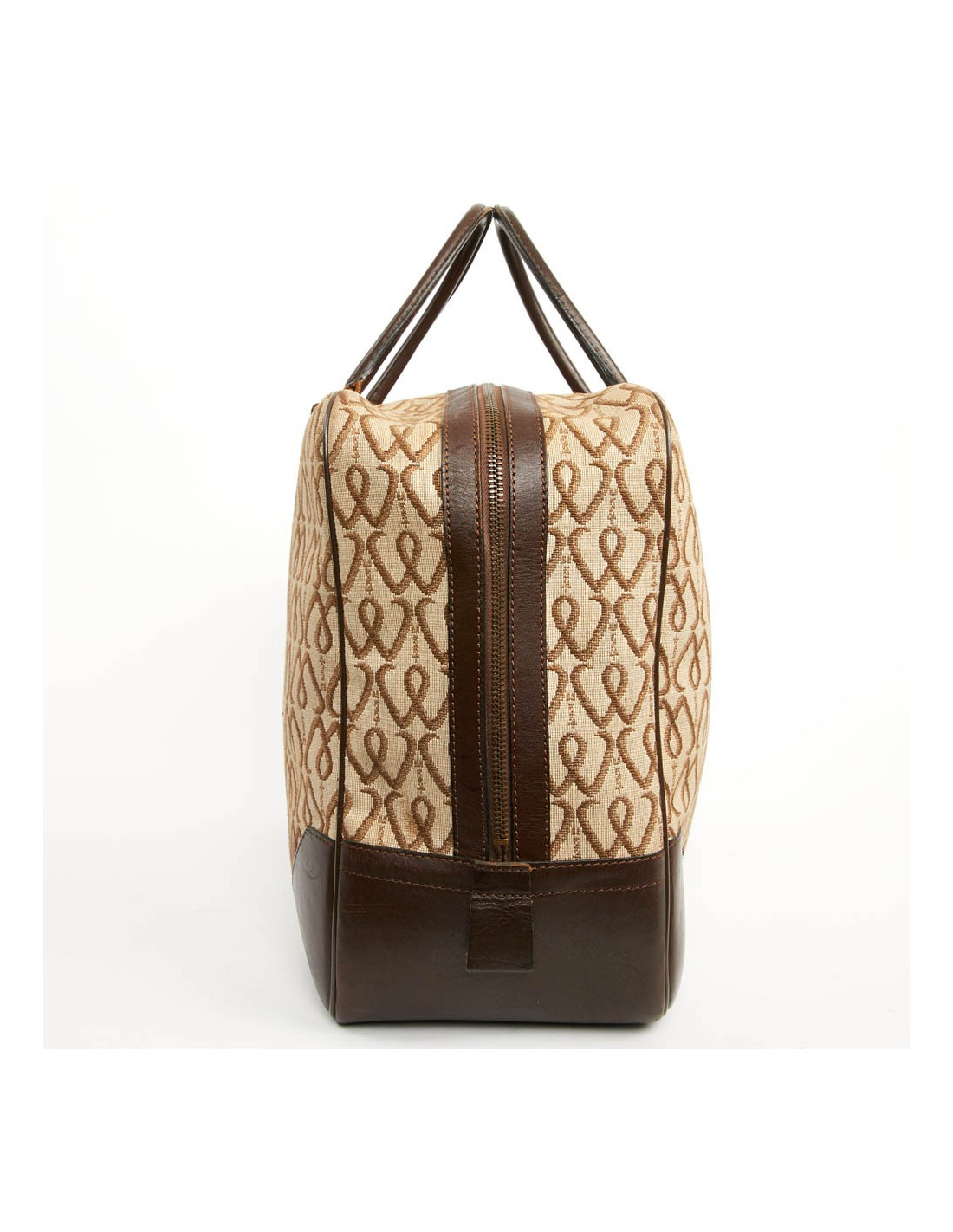Cabas Morabito, Place Vendôme Paris. Il est très léger, car il est recouvert de toile beige monogramme et cuir marron.