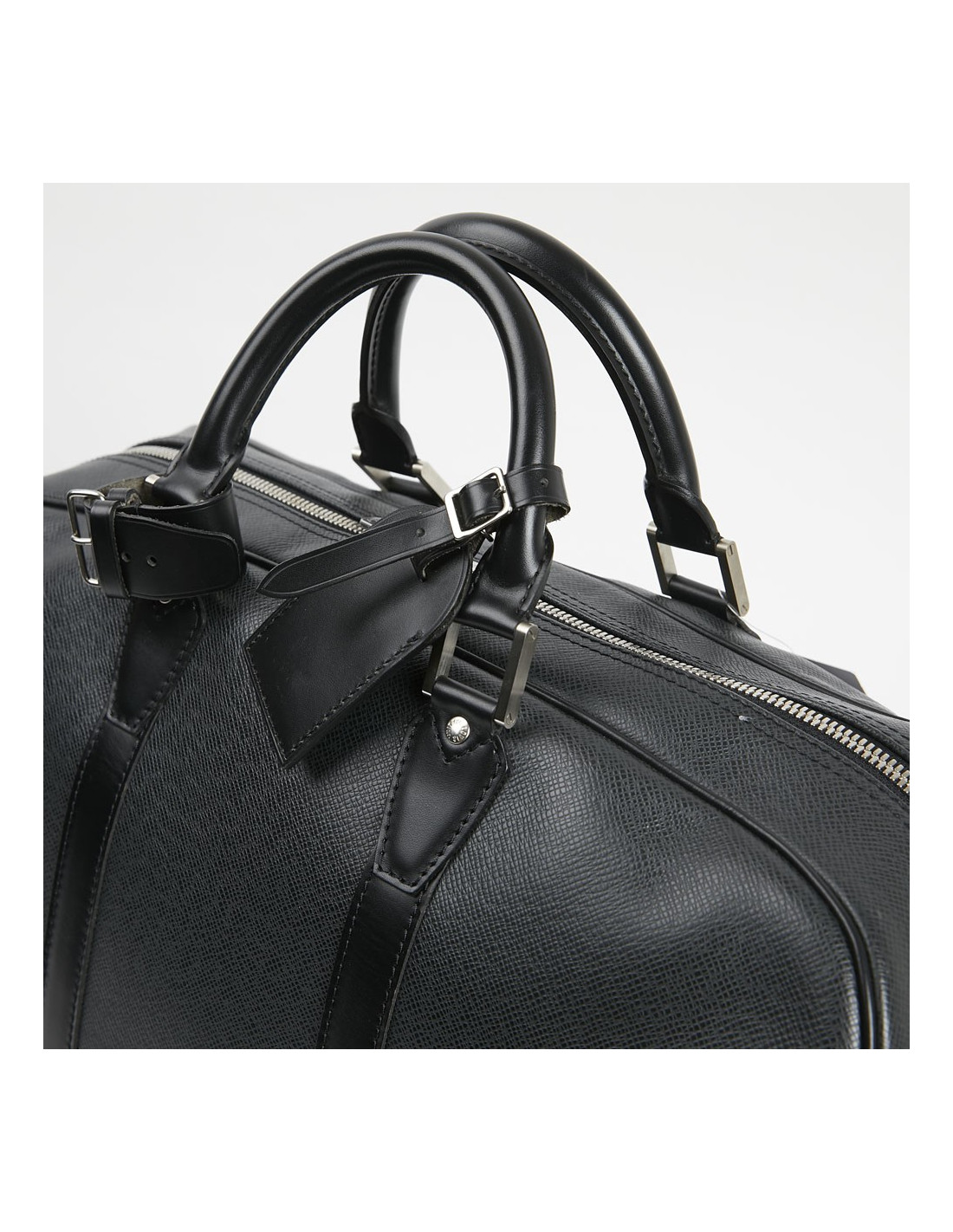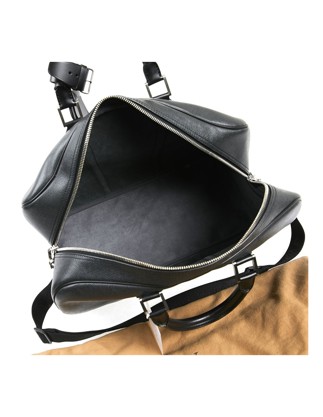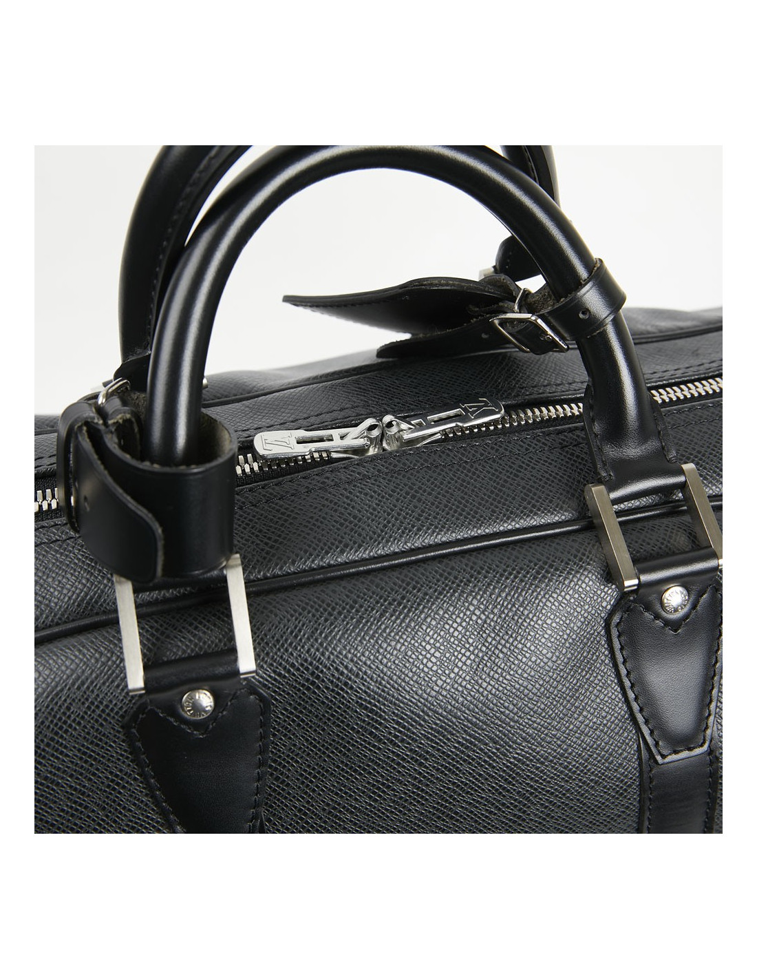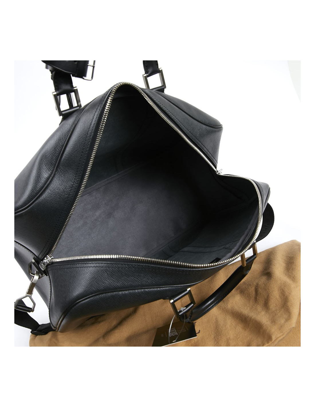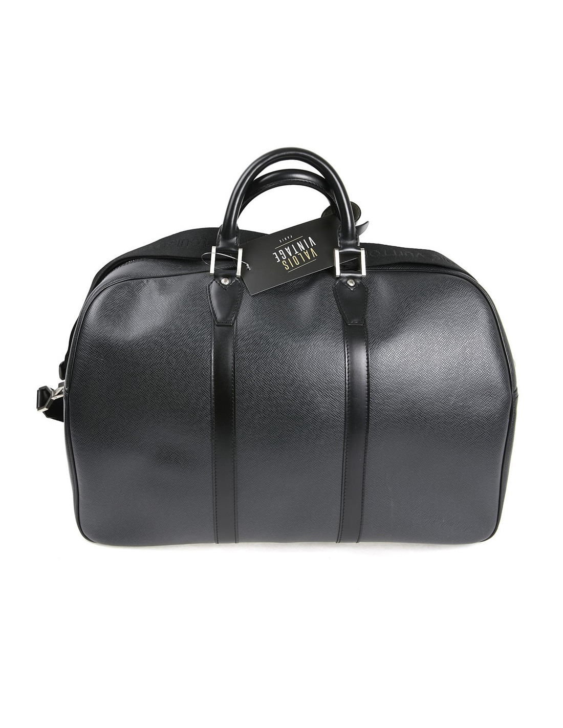 Ce grand sac de week end de la Maison Louis Vuitton appartient à la collection Kendall. Il est en cuir Taïga noir. Il est doublé de suede grise. La bijouterie est métal argent vieilli brossé, fermeture par une fermeture à glissière. Il est en très bon état. Il peut être porté main ou épaule avec sa bandoulière amovible.
