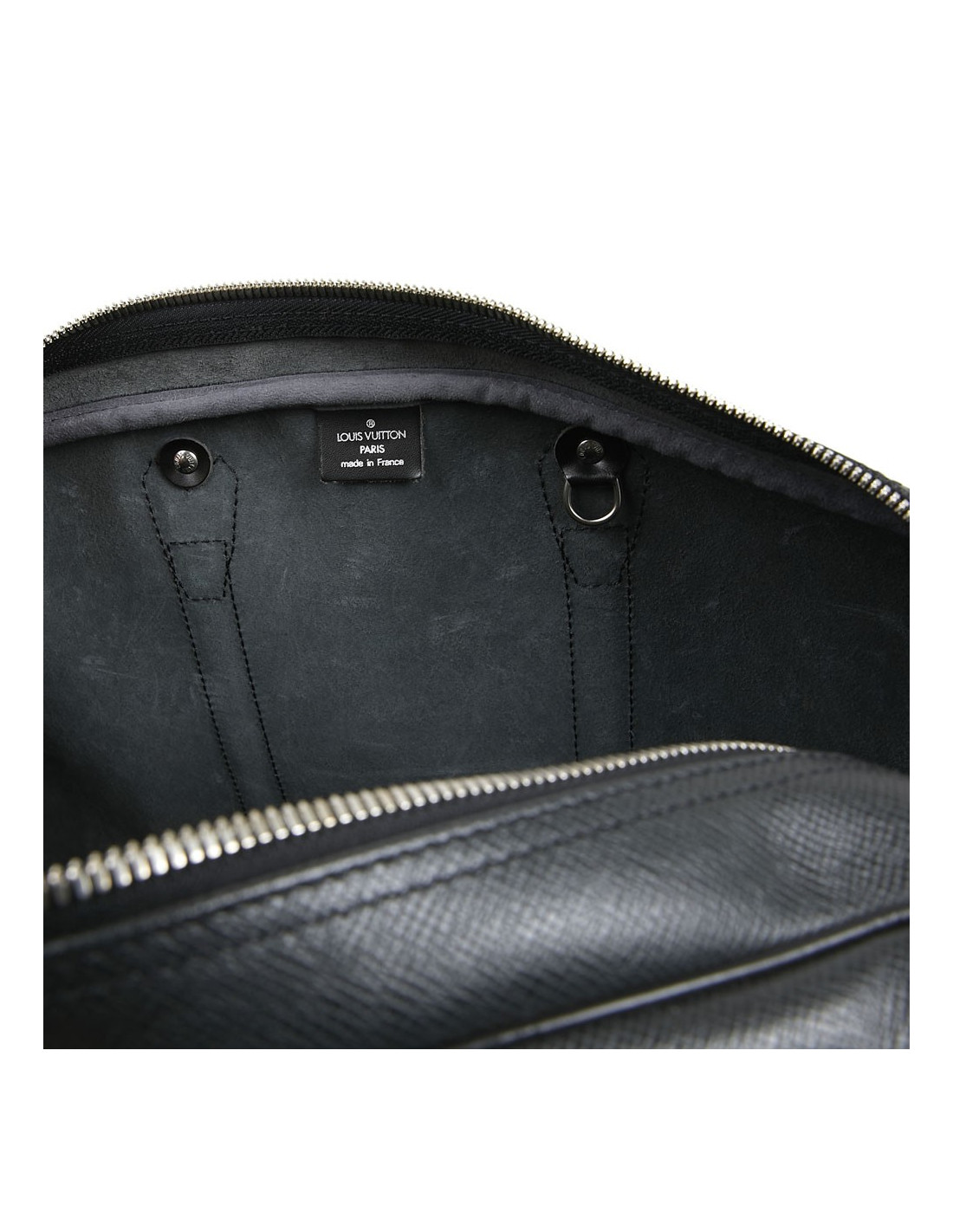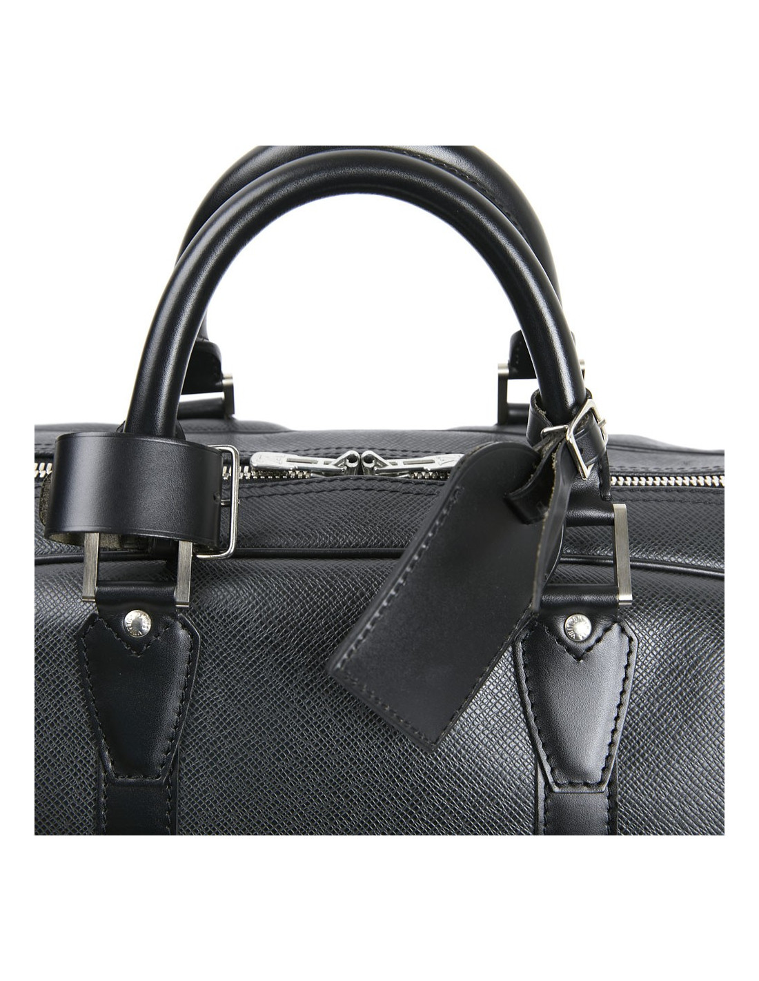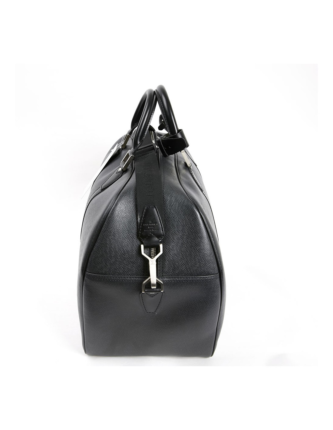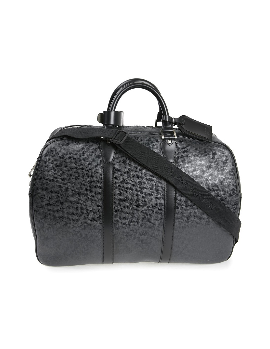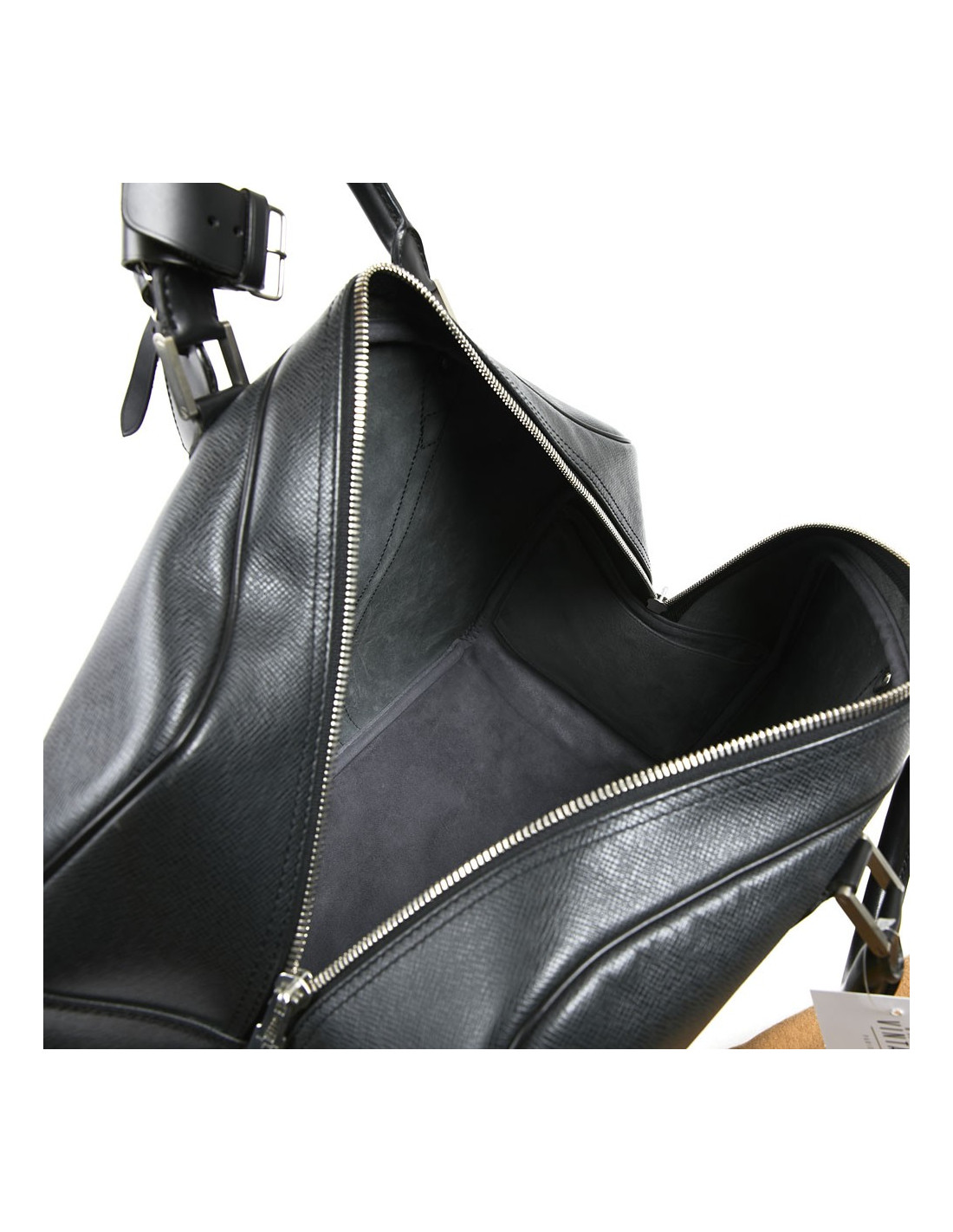 Ce grand sac de week end de la Maison Louis Vuitton appartient à la collection Kendall. Il est en cuir Taïga noir. Il est doublé de suede grise. La bijouterie est métal argent vieilli brossé, fermeture par une fermeture à glissière. Il est en très bon état. Il peut être porté main ou épaule avec sa bandoulière amovible.