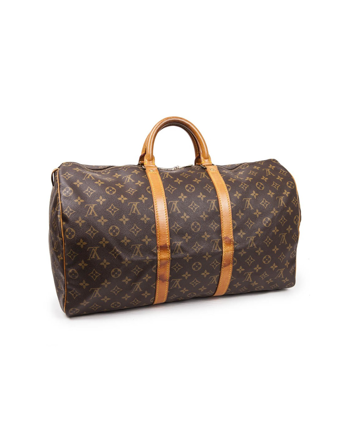 Sac Keepall 50 LOUIS VUITTON en toile monogram marron - Détails