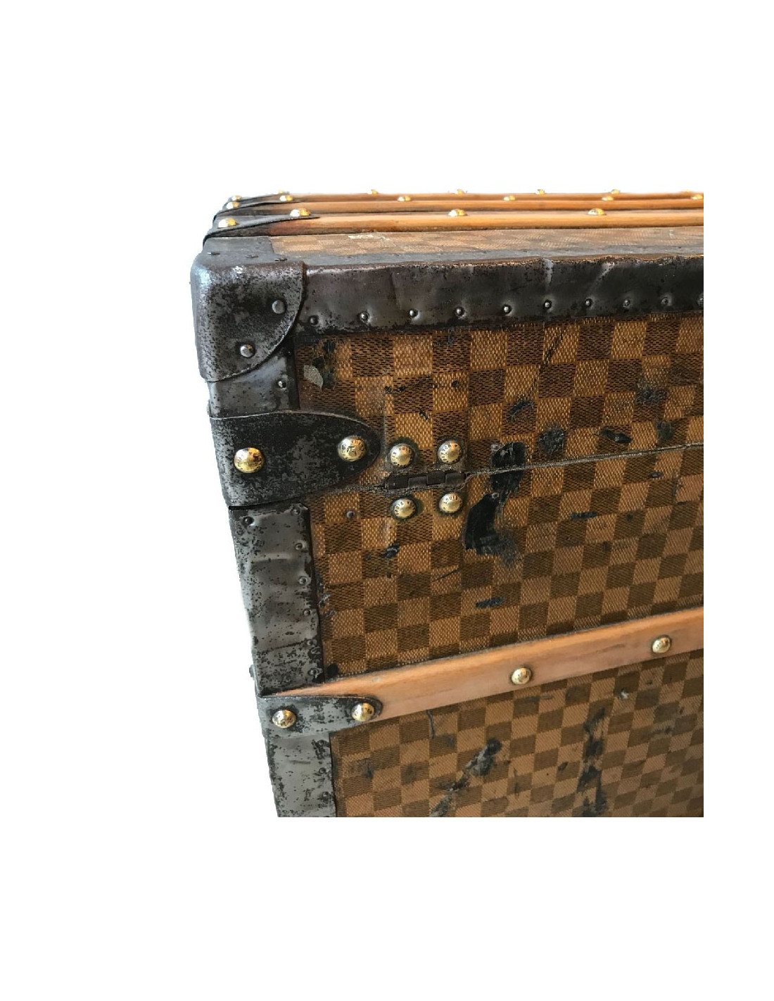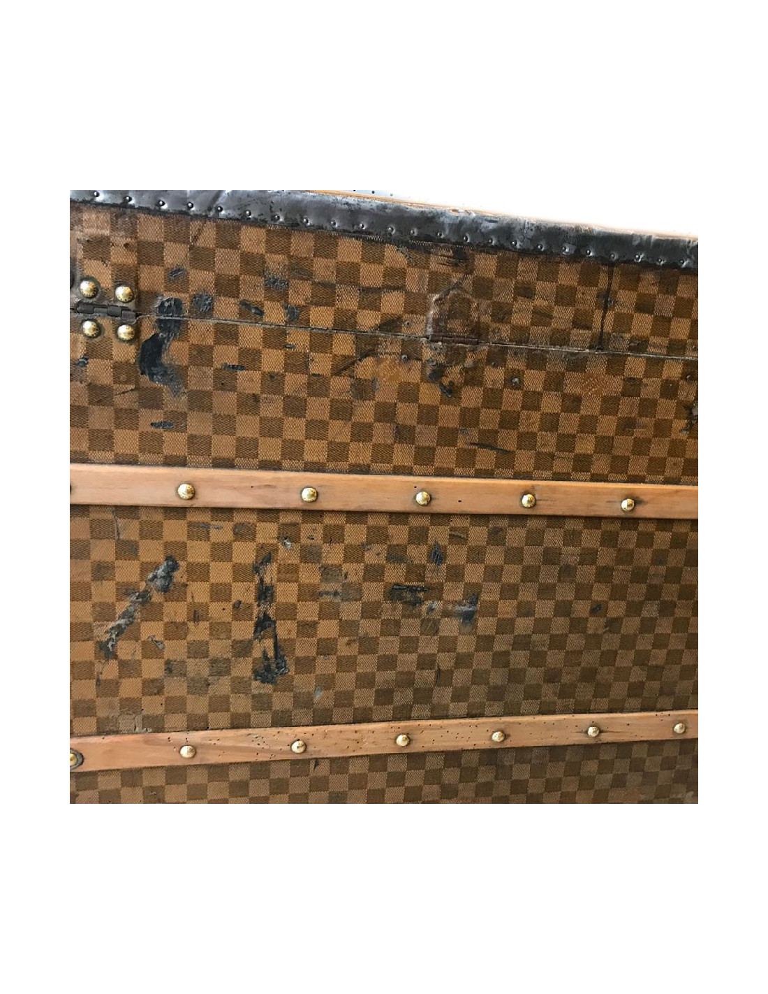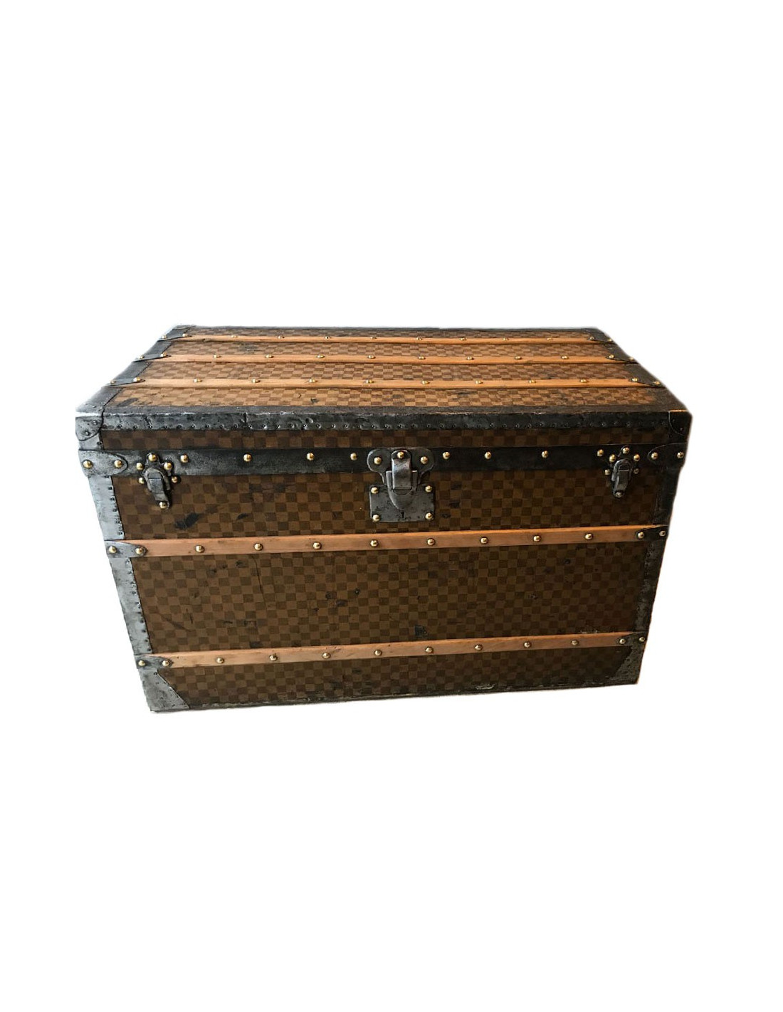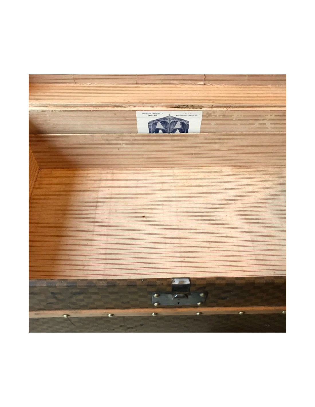 Malle Louis Vuitton vintage en toile damier datant de l’exposition universelle, très probablement fabriquée au 18eme siècle. La toile damier est la première toile créée par Louis Vuitton, avant le légendaire LV.