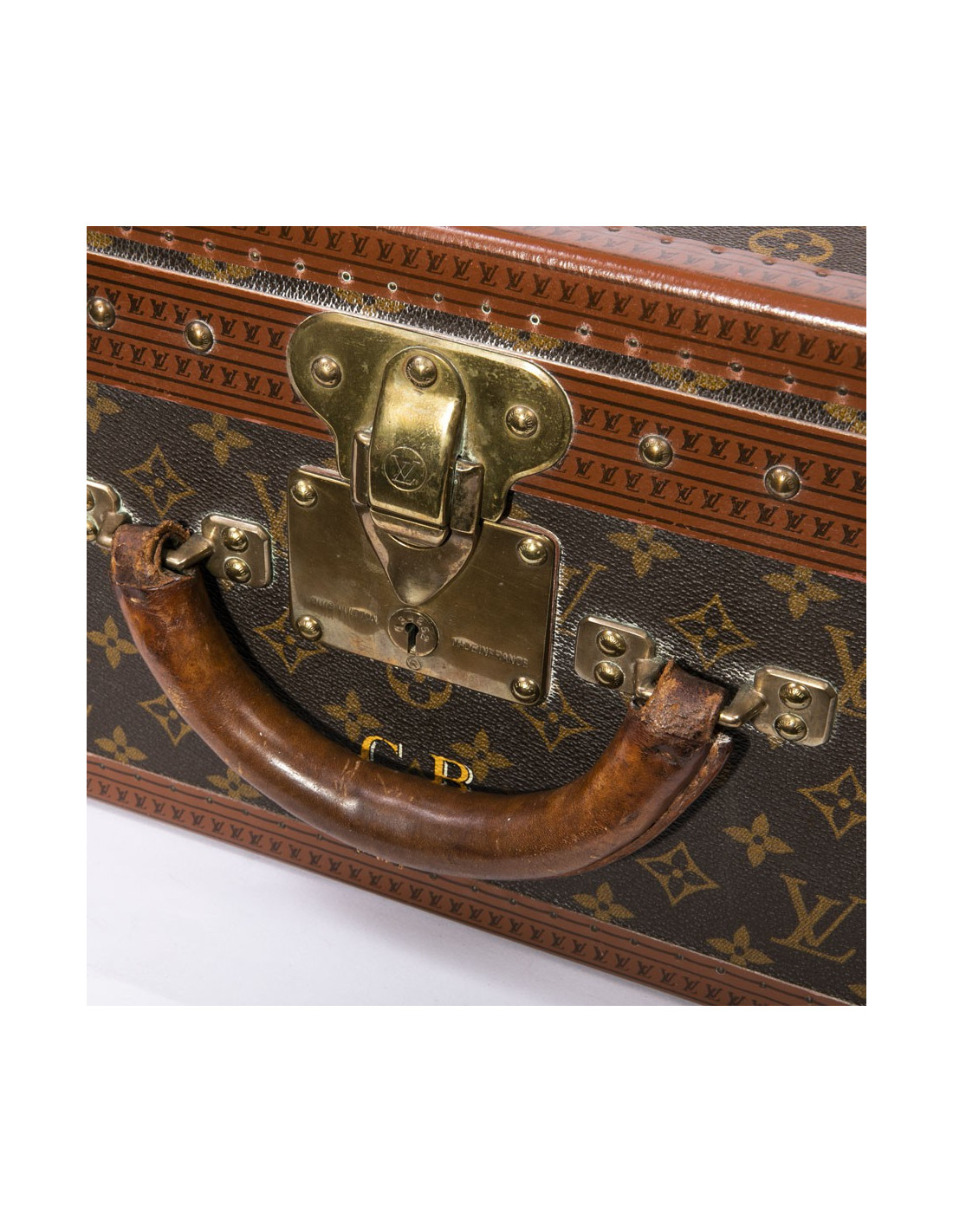 Malle / Valise rigide LOUIS VUITTON en très bonne condition en toile marron - détails :