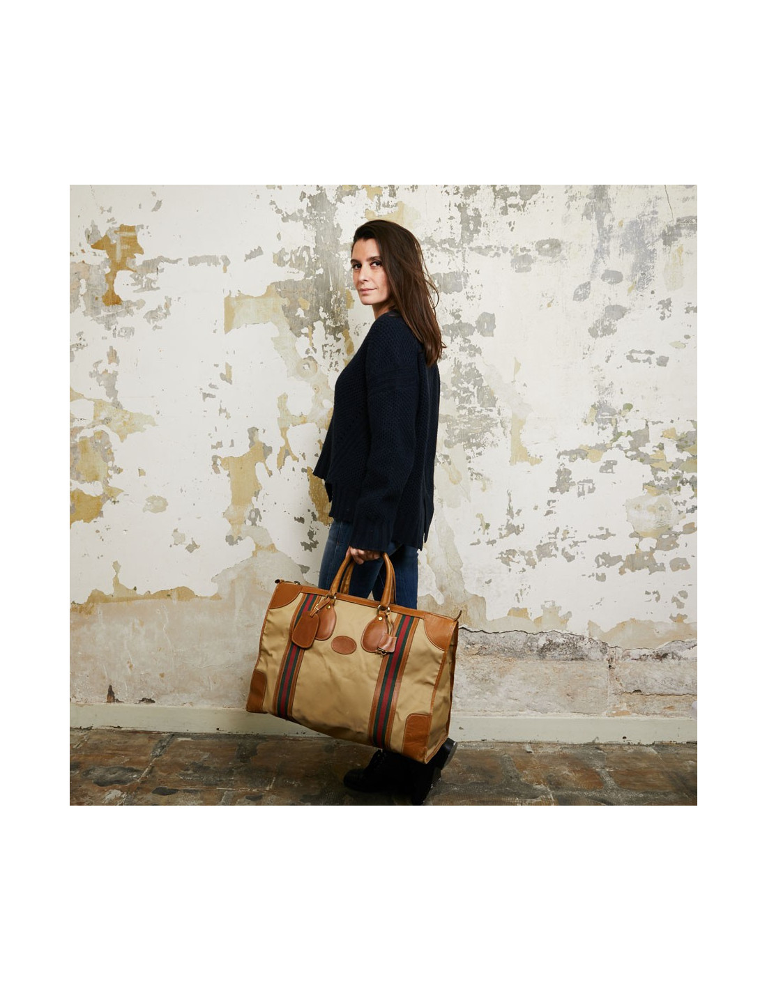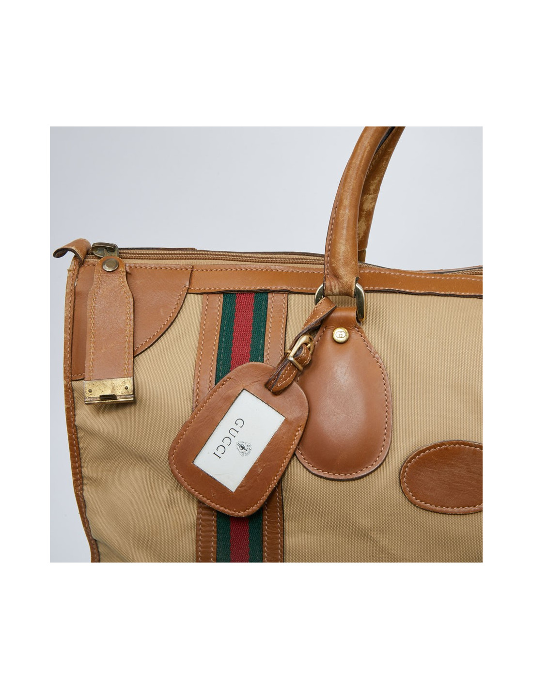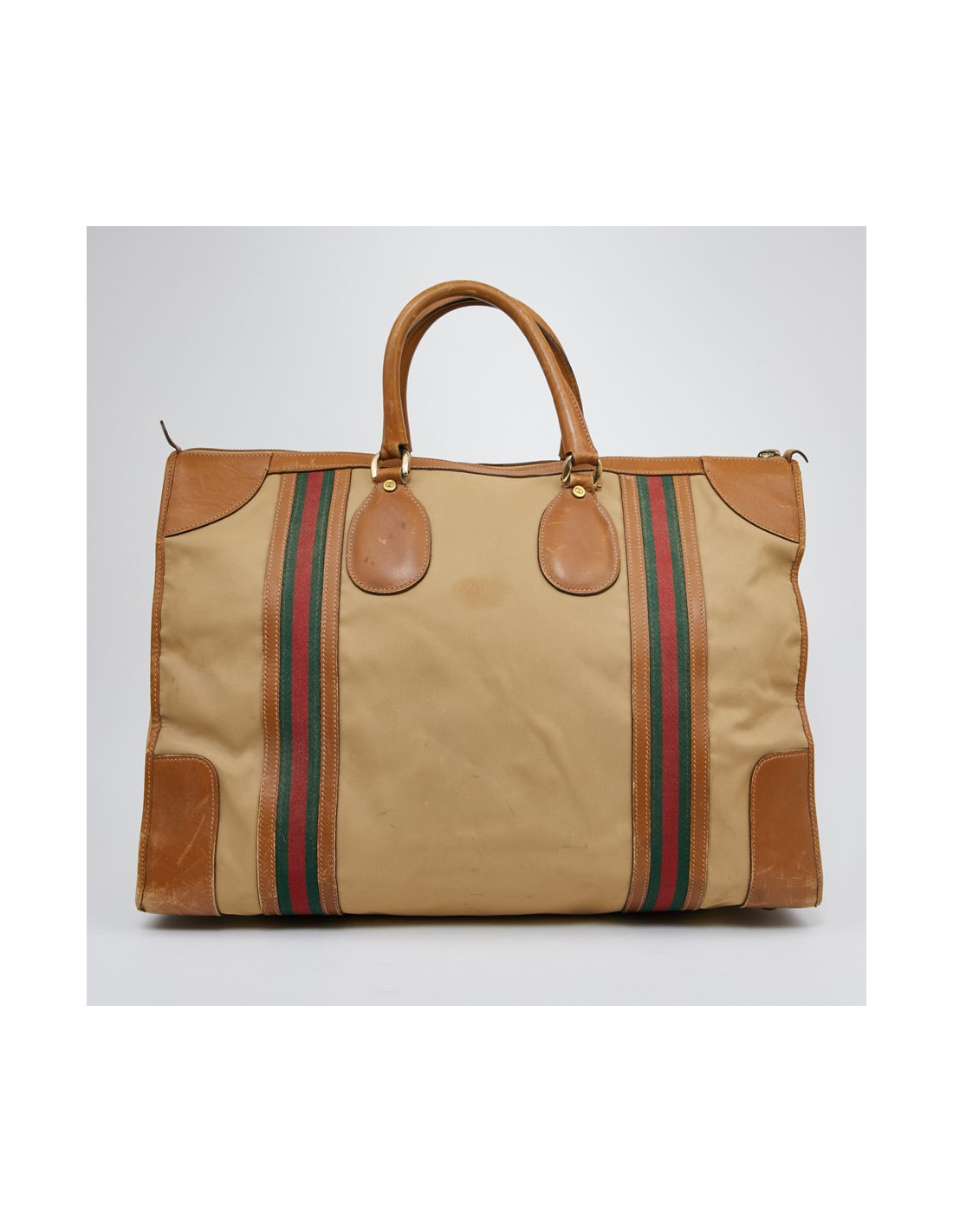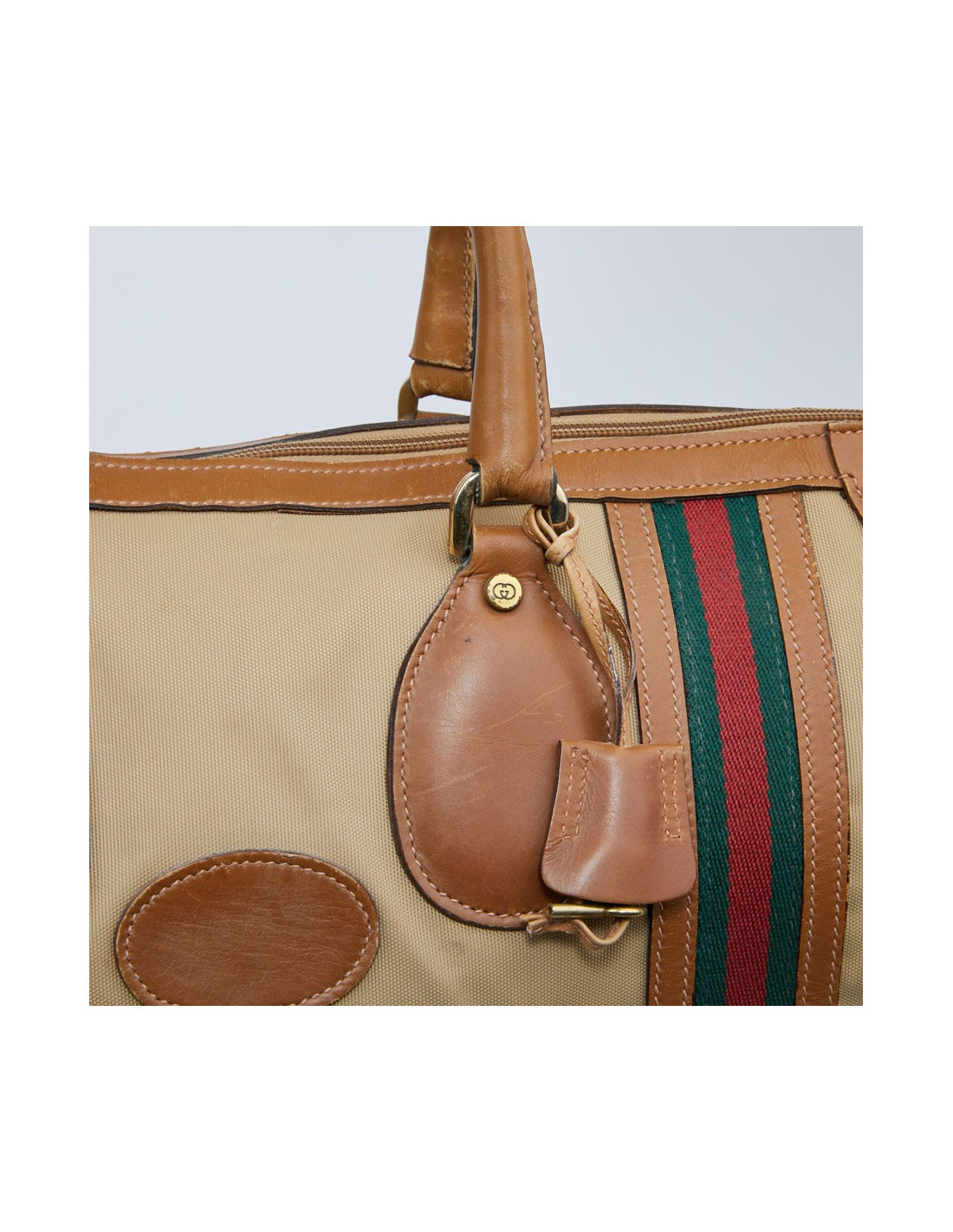VINTAGE Sac Weekender GUCCI en toile beige et bande web VINTAGE - détails :