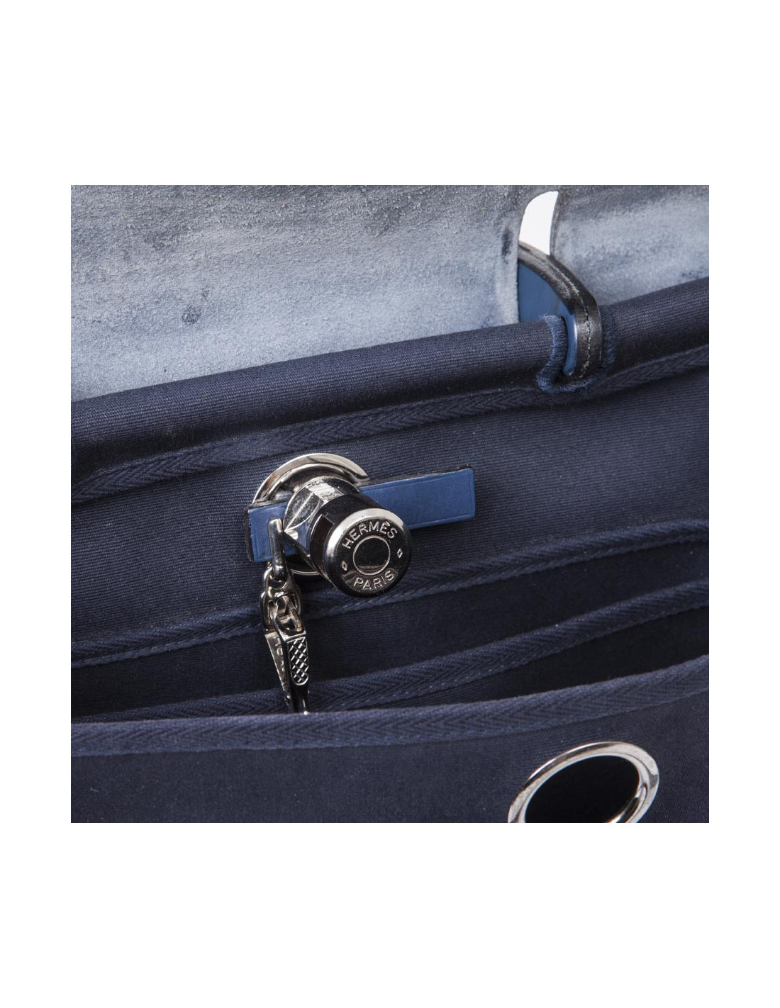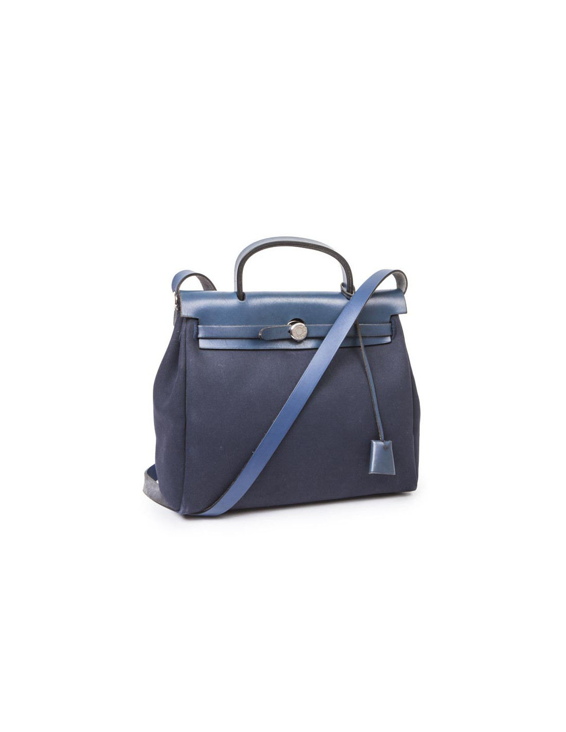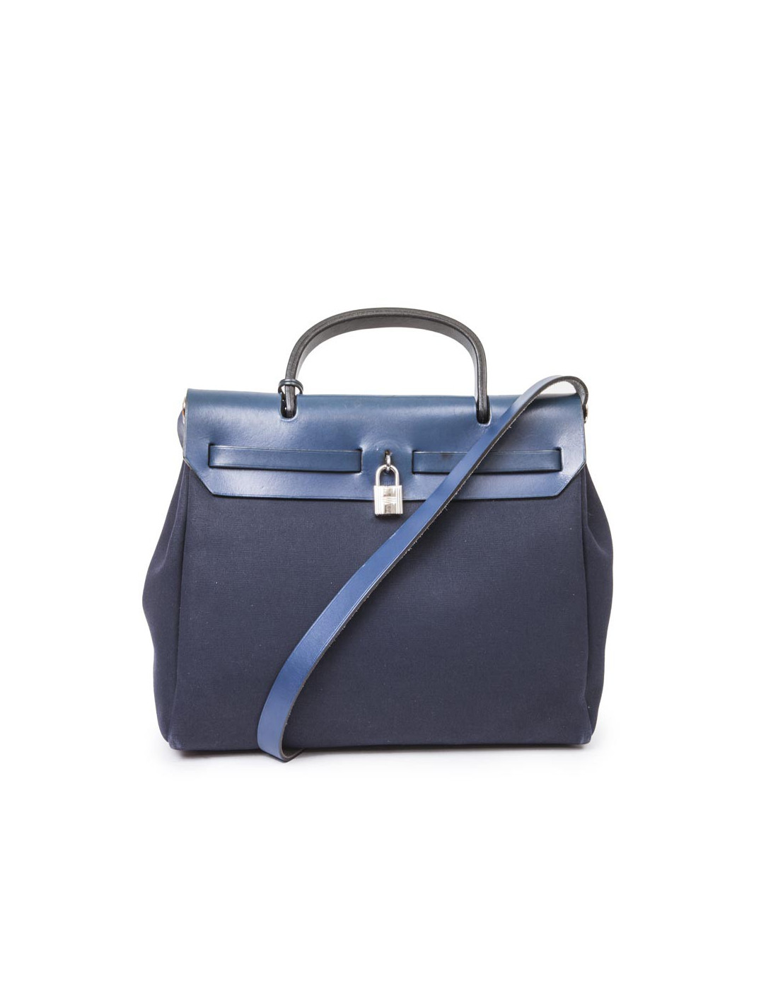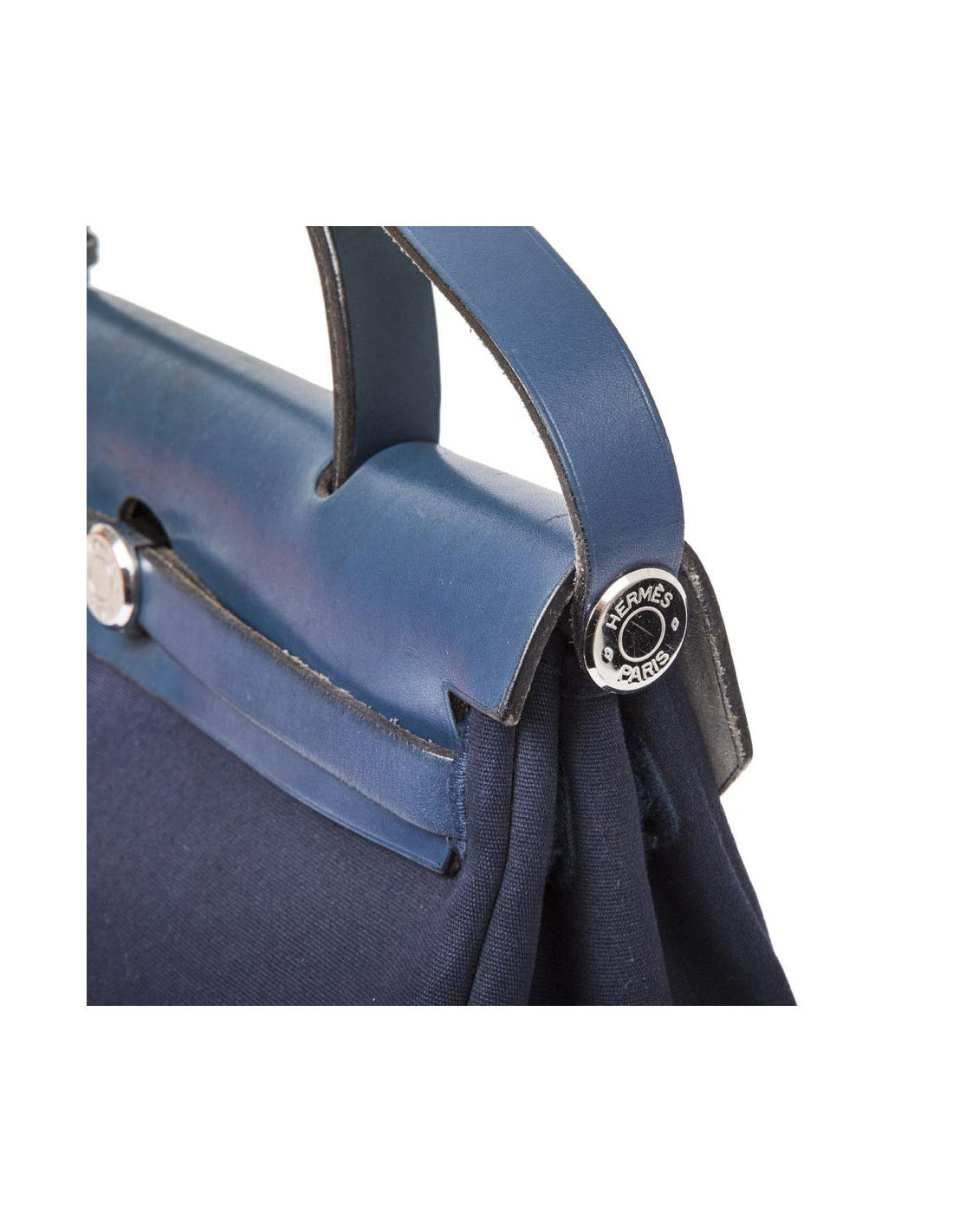 Sac Herbag HERMES en toile et cuir bleu nuit