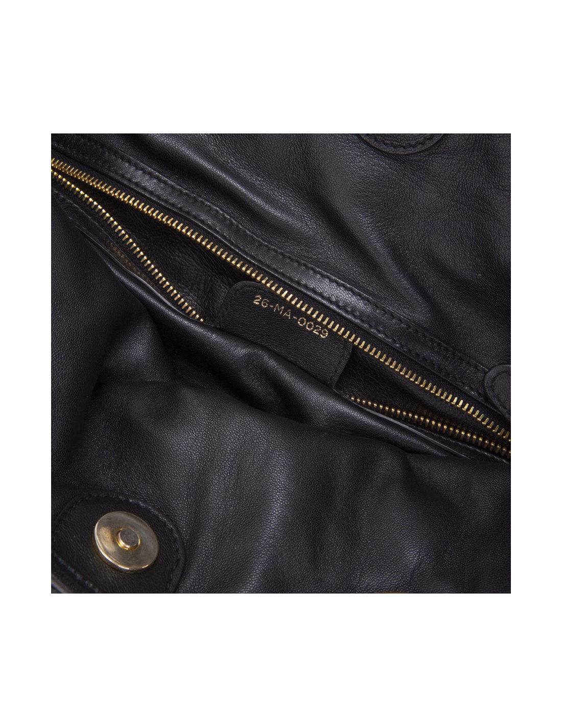 Sac cabas "Miss Dior" Dior en cuir matelassé noir. Accastillage en métal doré. Il se ferme avec un bouton pression et se porte à l'épaule avec les 2 anses. Il a un charm avec des lettres "D, I, O, R" attaché à l'une des anses. L'intérieur est en cuir lisse noir avec 3 poches plaquées dont une zippée. Numéro de série 26-MA-0029 avec carte d'identification.