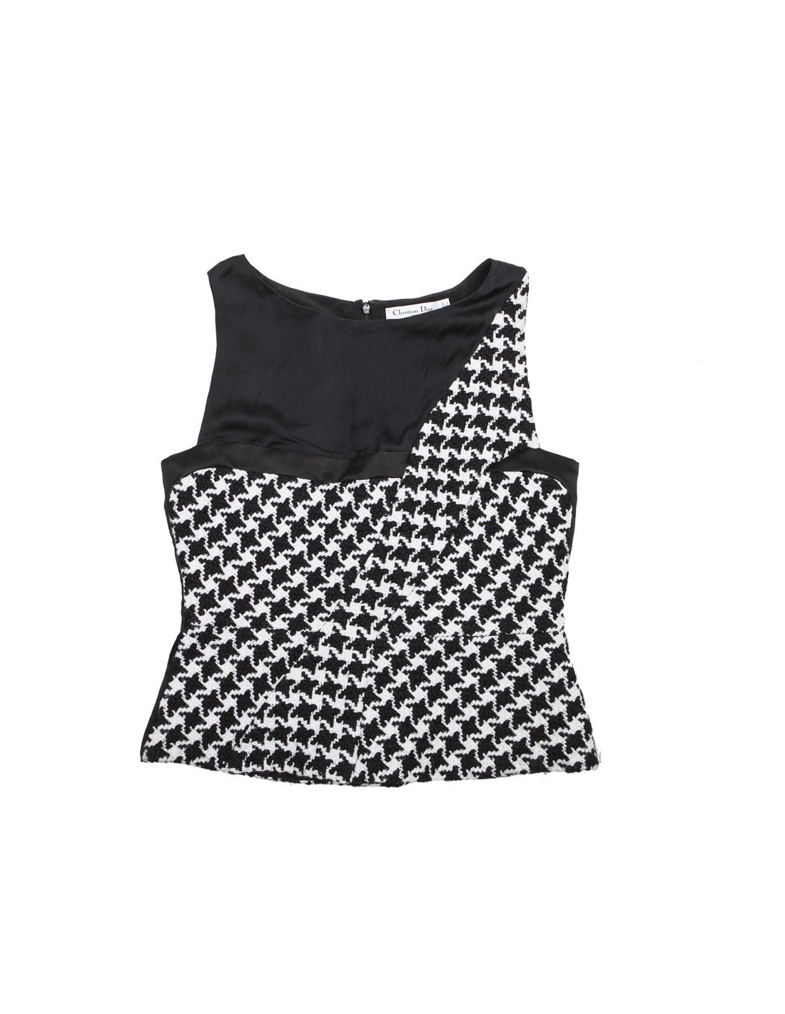 Bel ensemble haut taille 42 et pochette assortie Christian Dior, en tissu pied de poule noir et blanc, made in Italy. En très bon état.