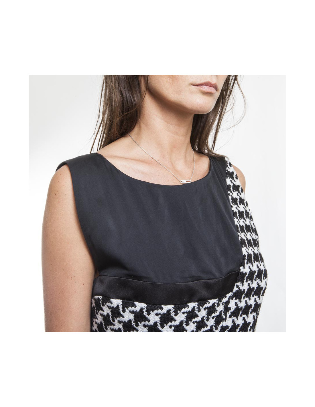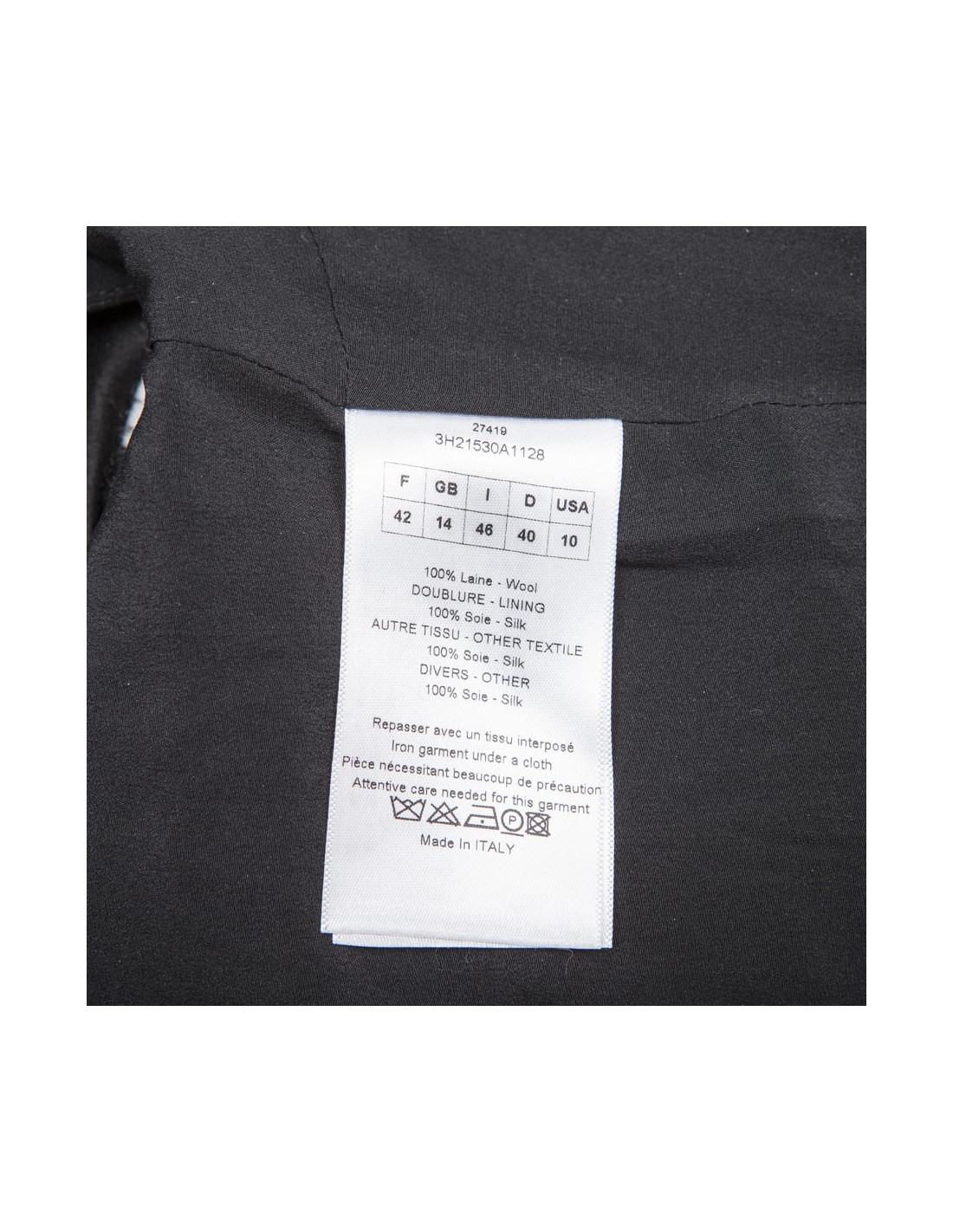 Le haut est doublé de soie 100% noire, avec un fermeture éclair dans le dos de 38 cm de long.